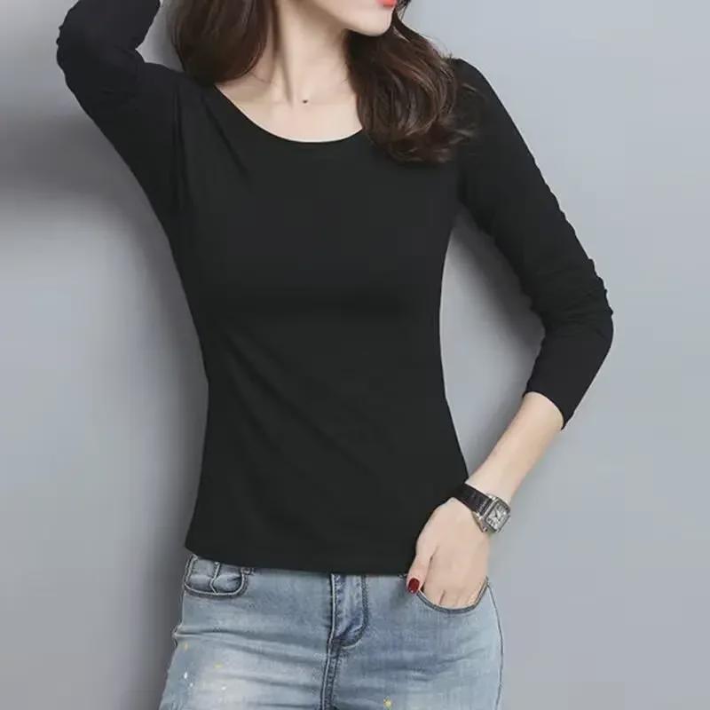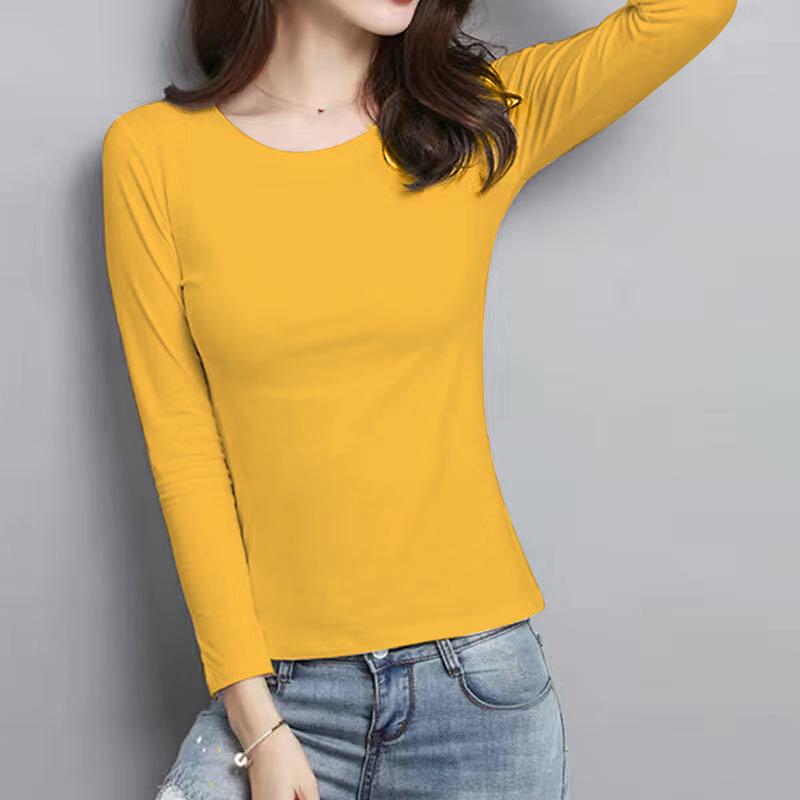 Женские облегающие однотонные футболки с длинным рукавом - Топы с круглым вырезом на весну/осень