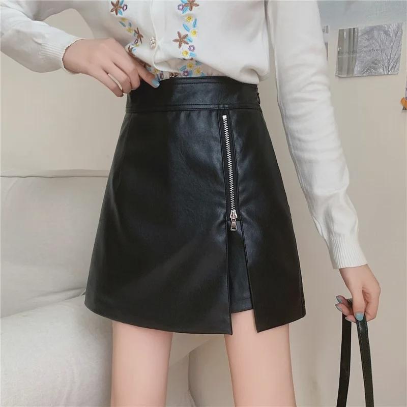 Юбка А-силуэта из искусственной кожи с высокой талией, осень/зима 2023 г.: Тонкий, прикрывающий бедра, модный корейский стиль — купить товар онлайн с бесплатной доставкой по всему миру!