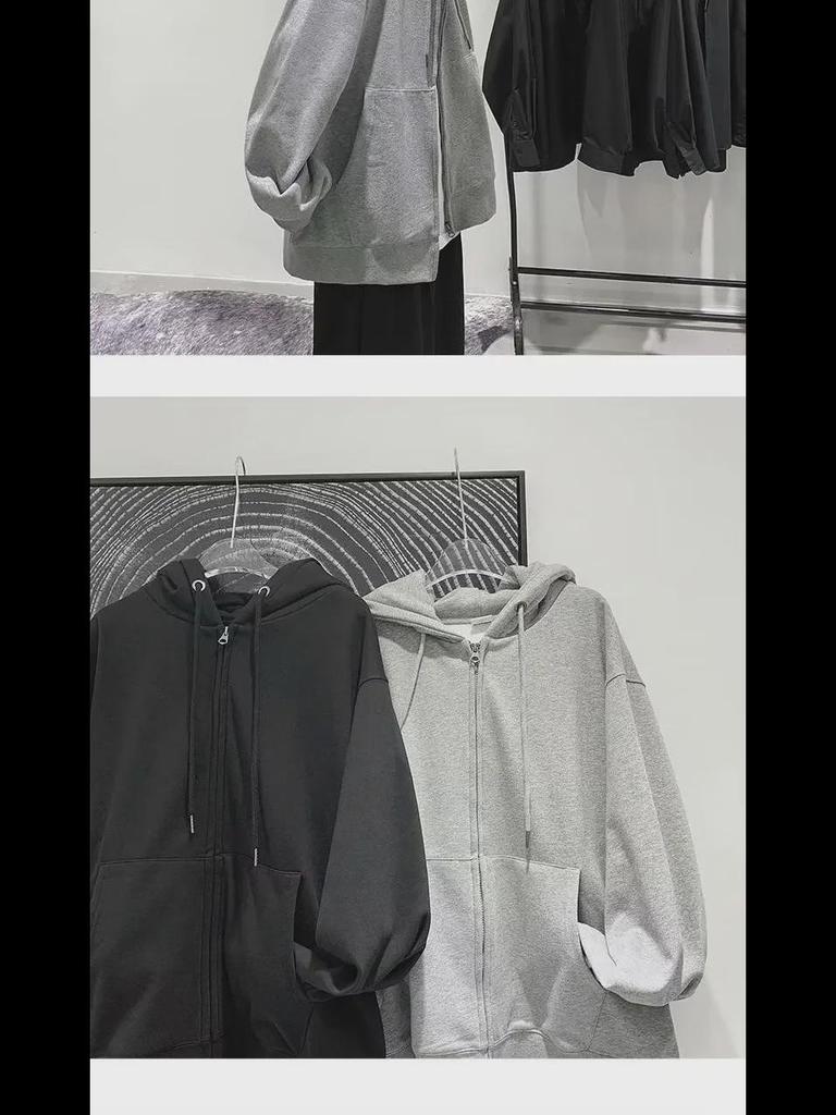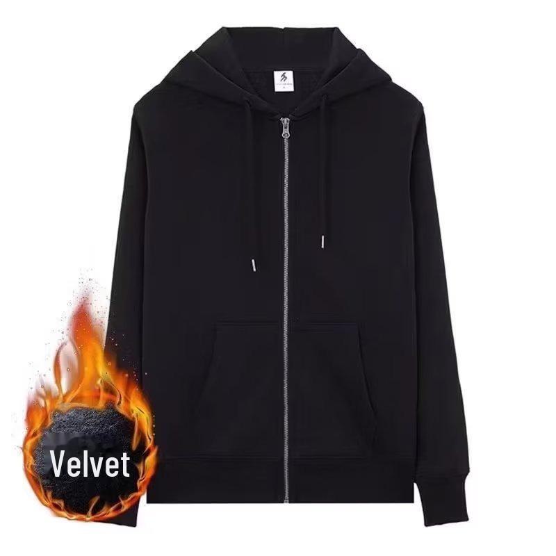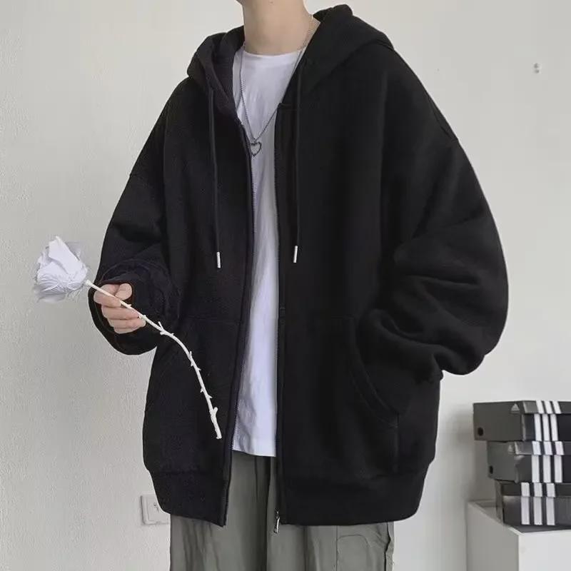 Мужская толстовка с капюшоном на молнии — повседневный свободный крой, бархат, спортивная одежда на весну/осень.