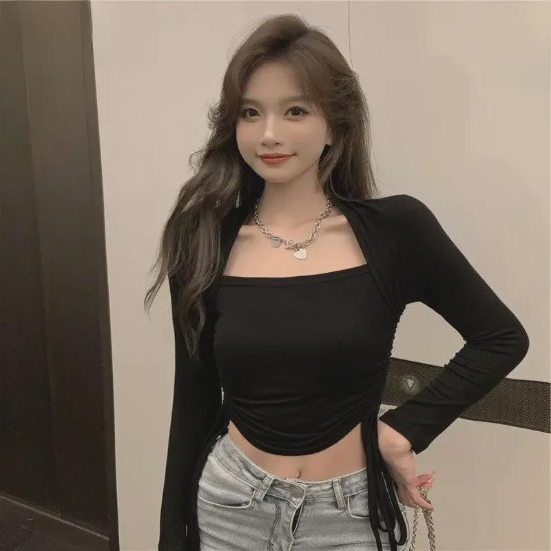 Женская стильная футболка с длинным рукавом, ранняя осень