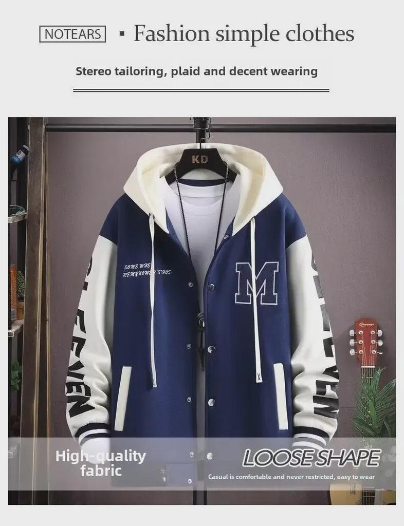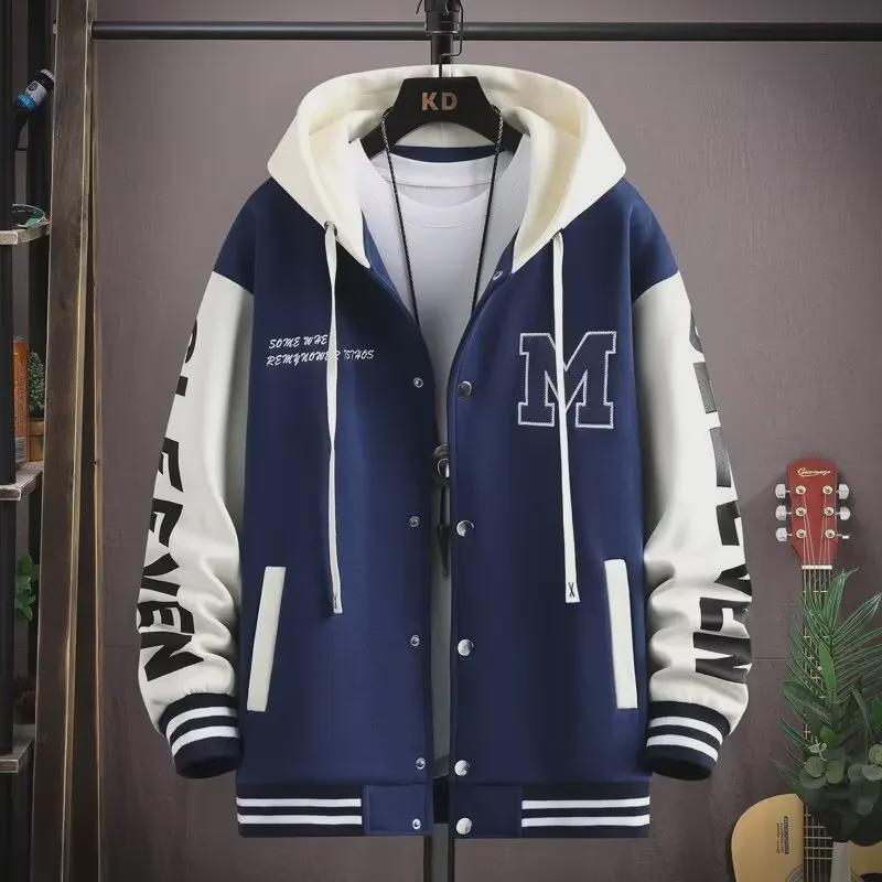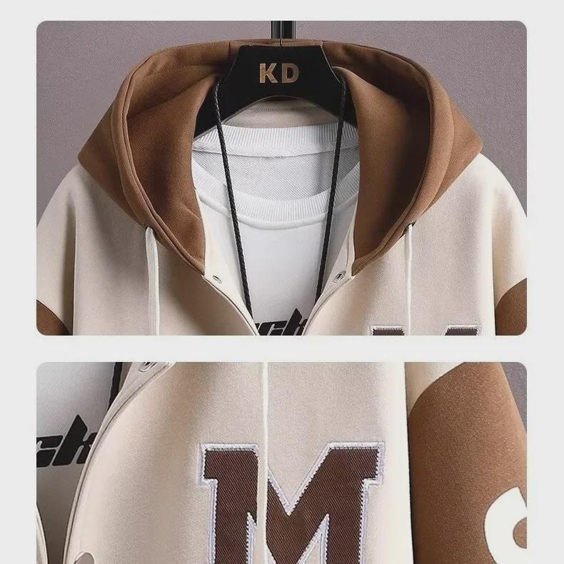 2024 Осень/Зима Толстая контрастная цветная вышитая куртка-свитер с капюшоном для подростков и пар
