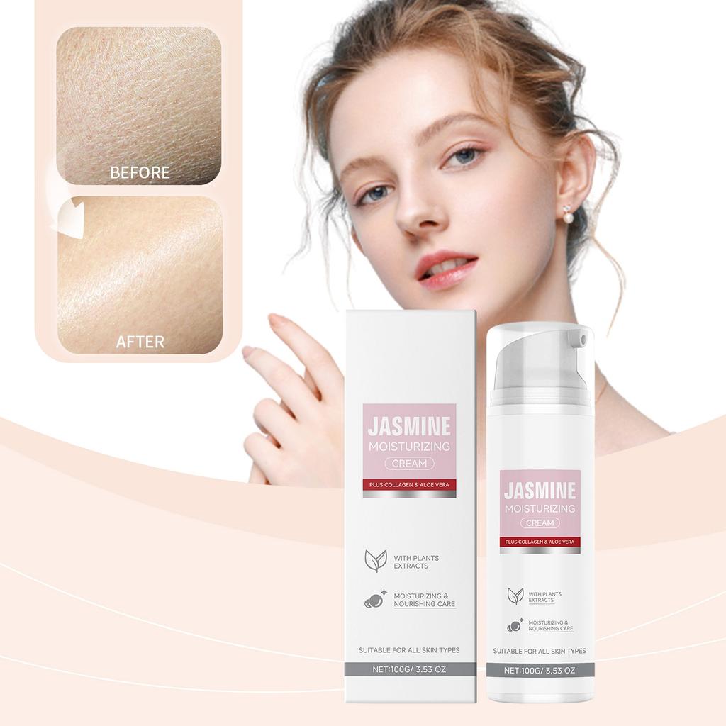 Увлажняющий крем с коллагеном и экстрактом жасмина. Увлажняющий, питательный, против глубоких морщин, осветляющий, фиксирующий, увлажняющий.