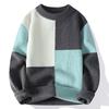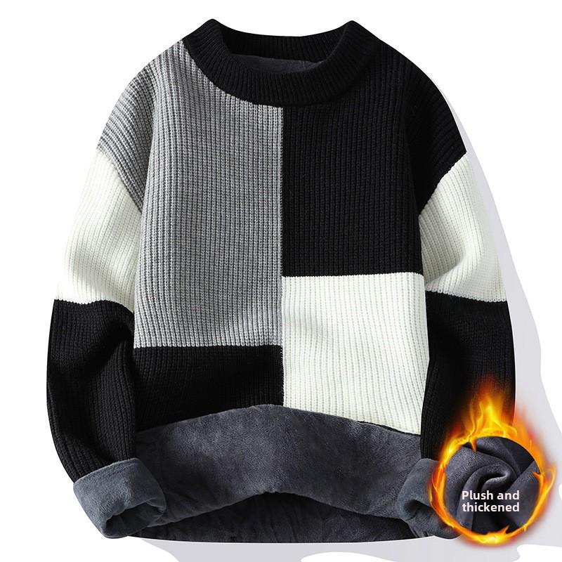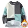 Мужской свитер с высоким воротом контрастного цвета 2024 года: Зимняя теплая свободная толстая трикотажная вельветовая одежда