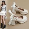 Кожаные туфли, женские туфли Мэри Джейн на толстом французском толстом каблуке с жемчужным бантом и одинарной обувью