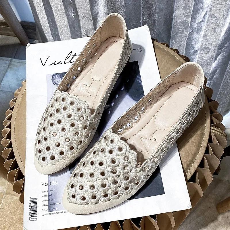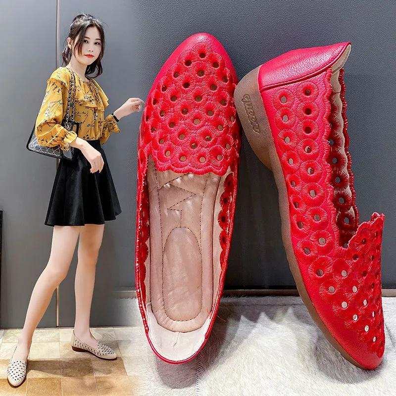 Повседневная обувь с вышивкой, женские туфли с острым носком, неглубокие, без застежек, мягкие кожаные мокасины для поездок на работу, корейская мода