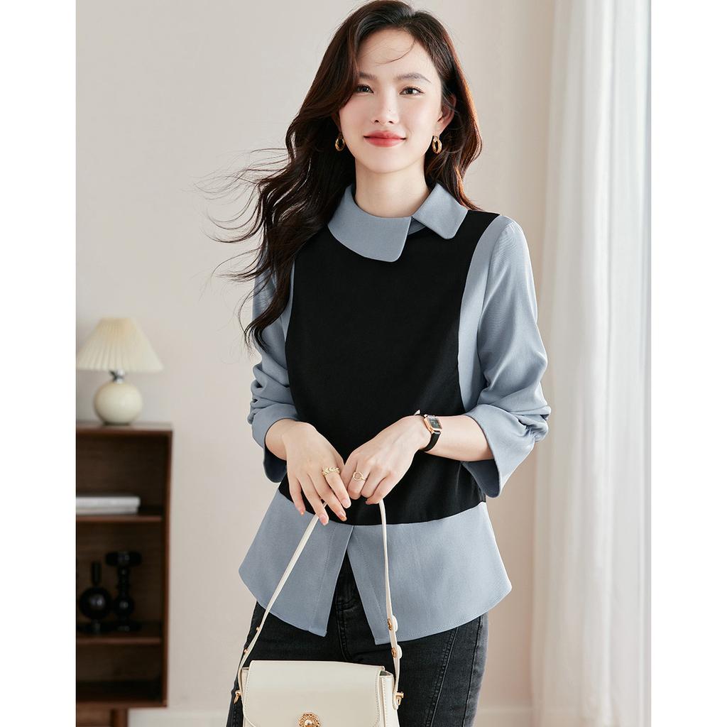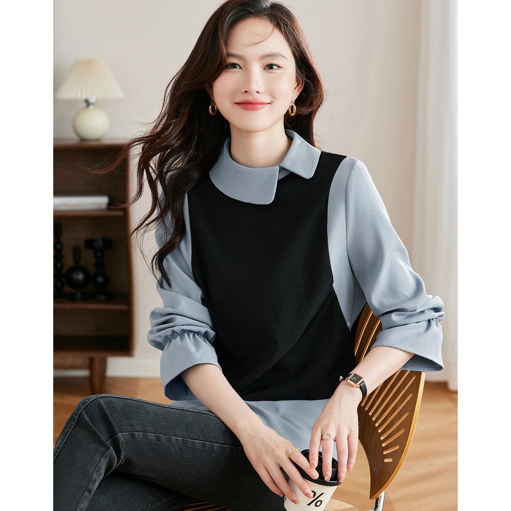 Контрастная рубашка с воротником-стойкой Doll и новыми рукавами-клапанами в японском и корейском стиле, женская рубашка