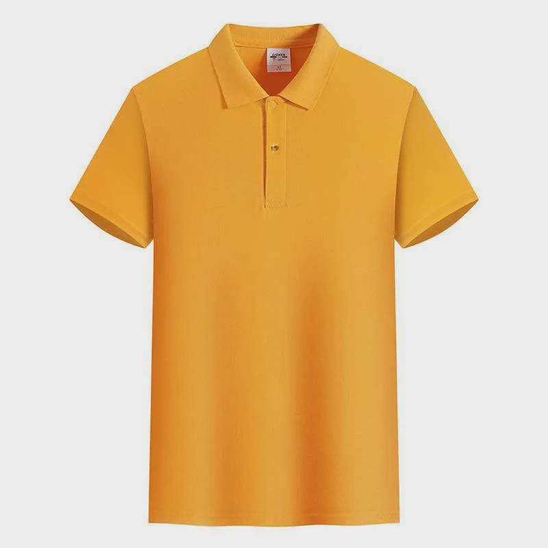 Рубашка поло из желтого хлопка, короткий рукав, 180 г, 32 штуки, однотонная, с лацканами, универсальная повседневная посадка, летняя одежда