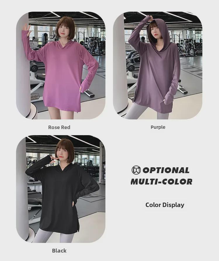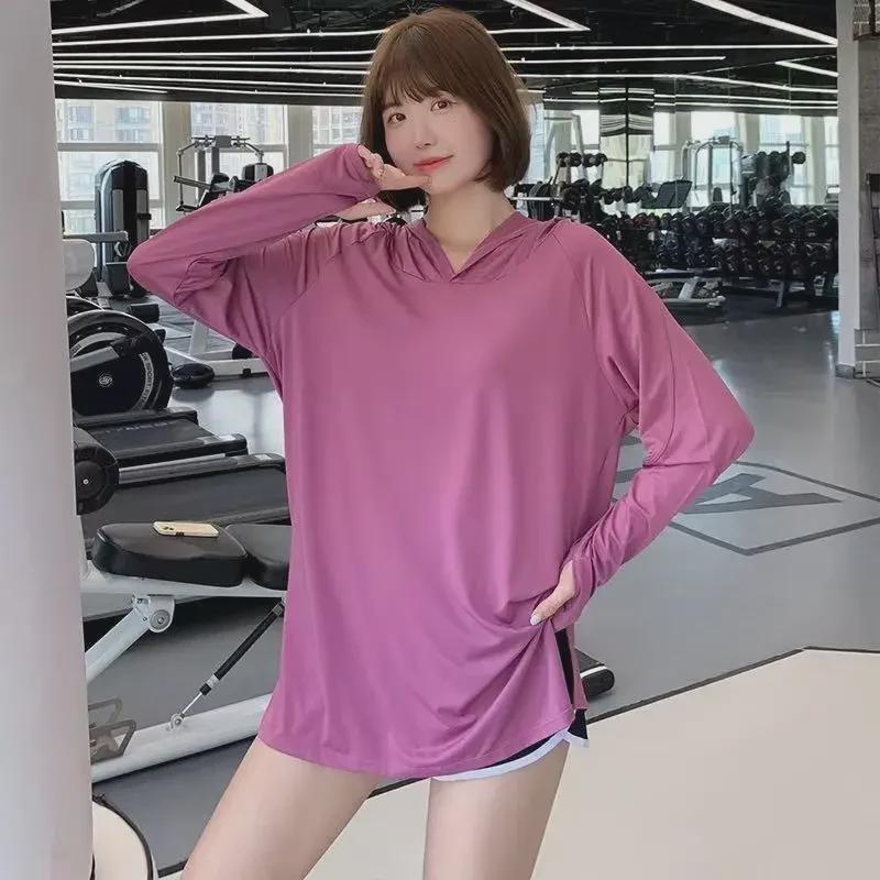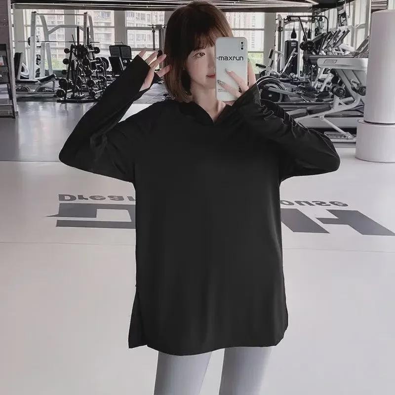 Женская спортивная одежда для йоги с капюшоном больших размеров — облегающий крой и свободная футболка