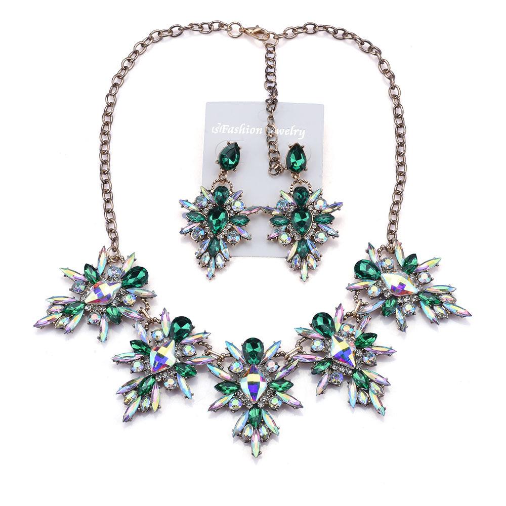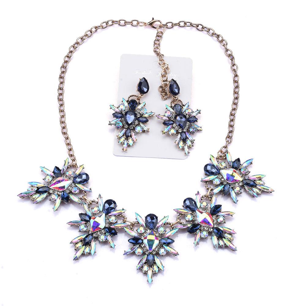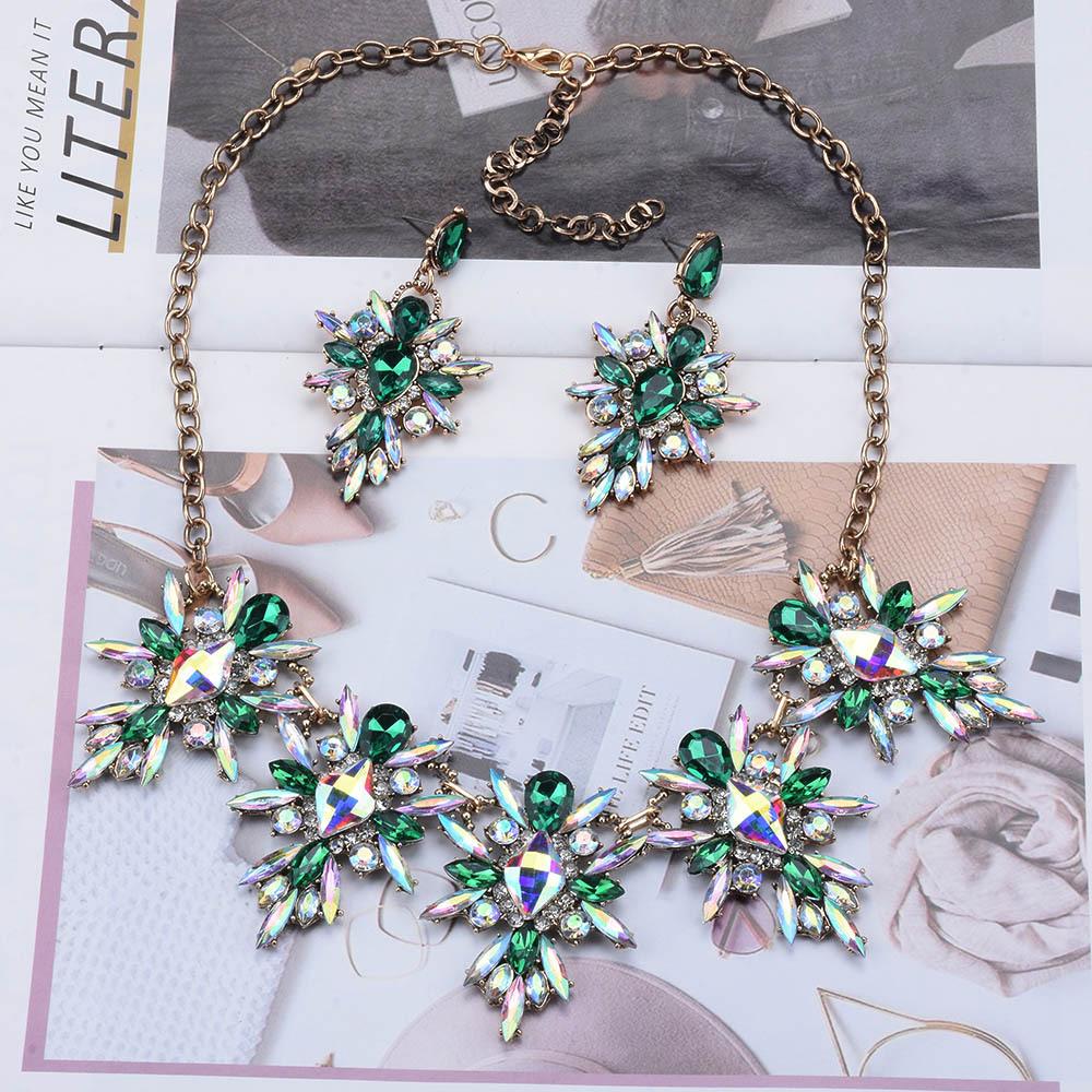 Ожерелье Кристалл Красочные Большие Стеклянные Серьги Ожерелье Комплект Модный Универсальный