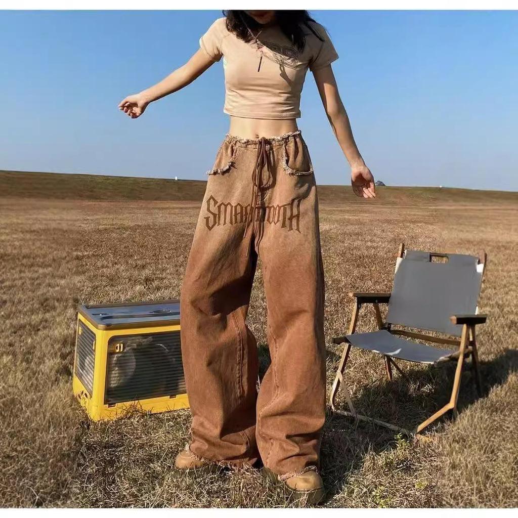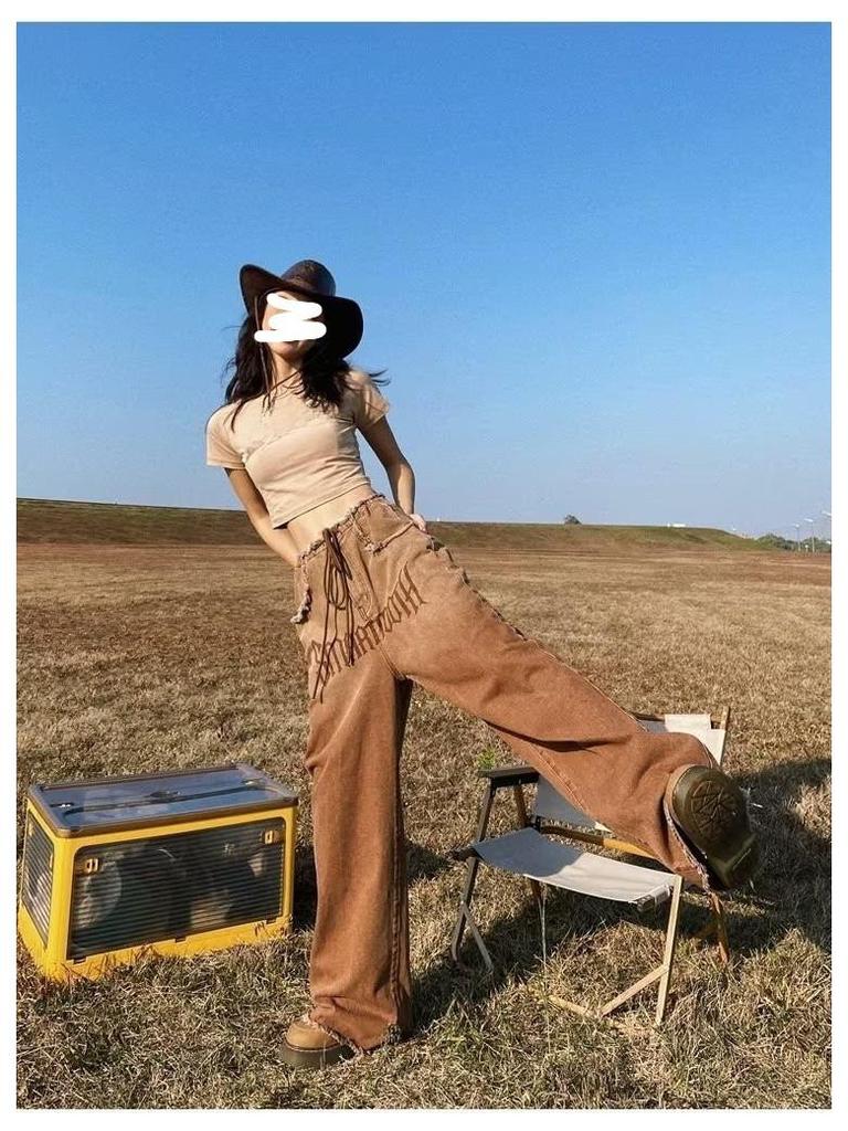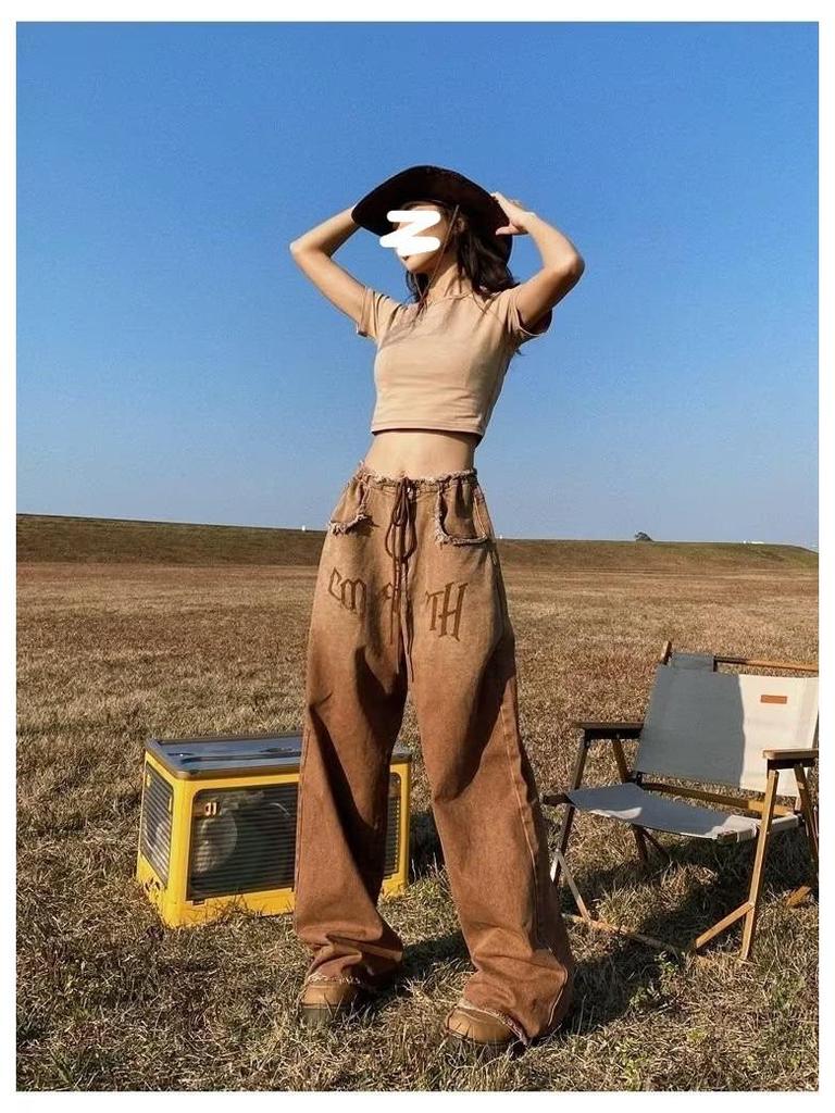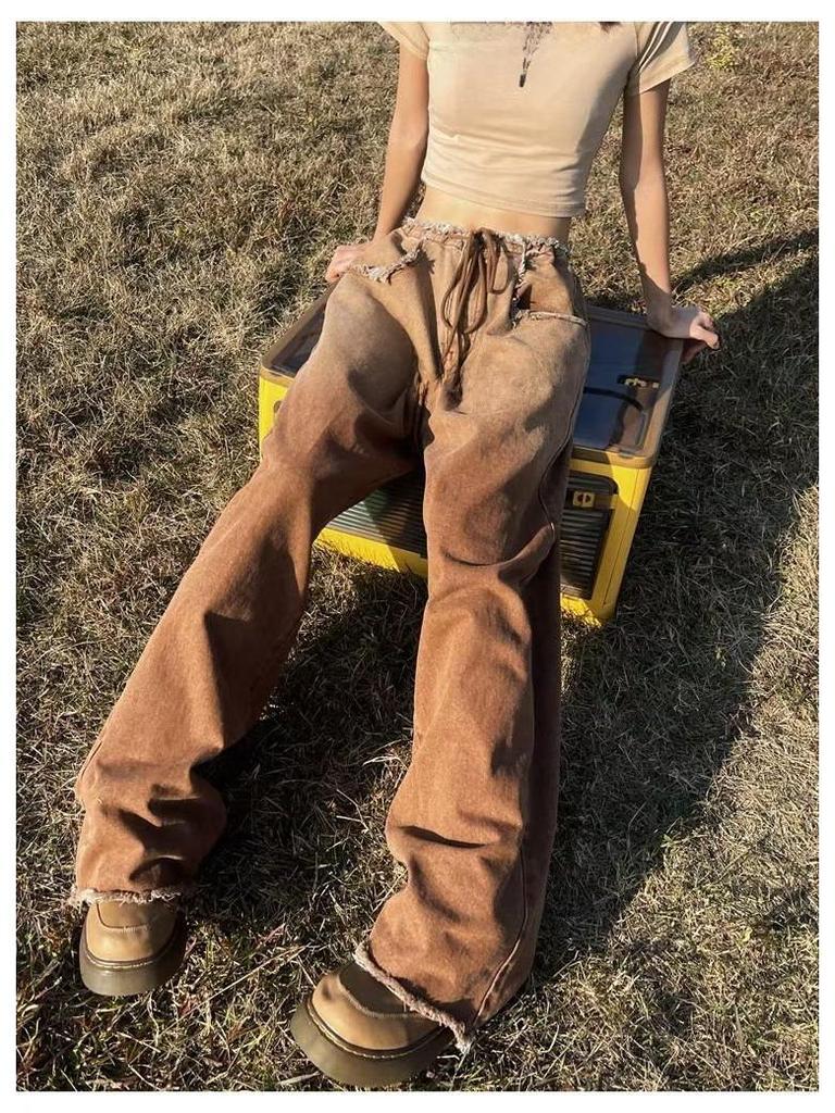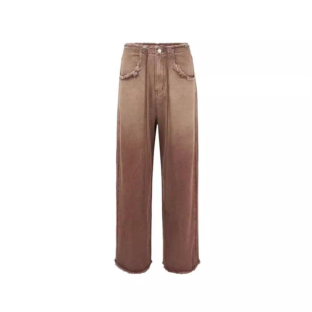 Женские джинсы American Retro Gradient: Большой размер, облегающий, широкий, с необработанным краем, для весны и осени