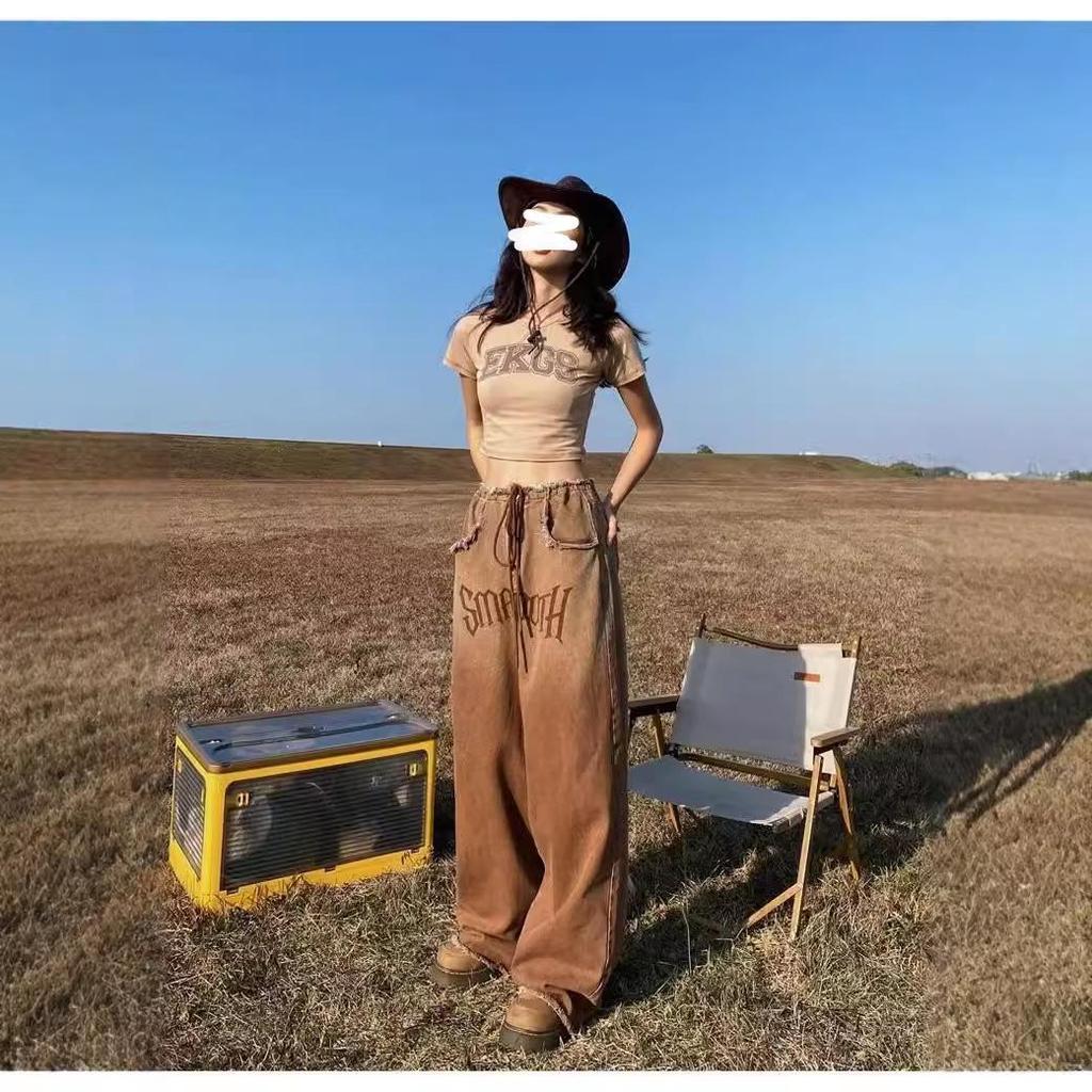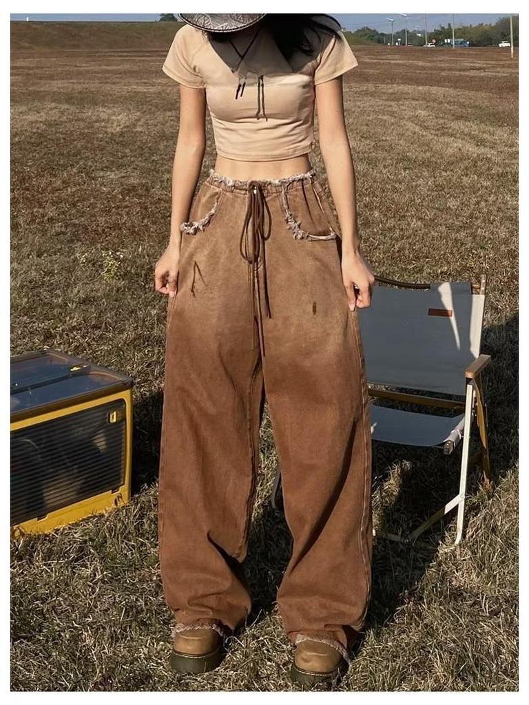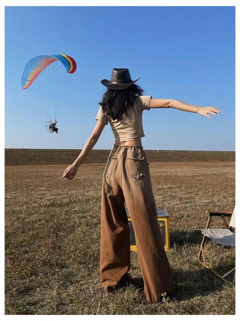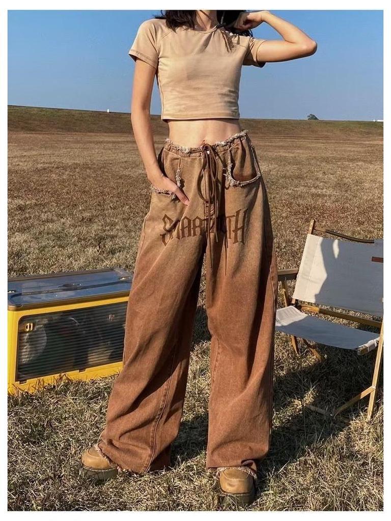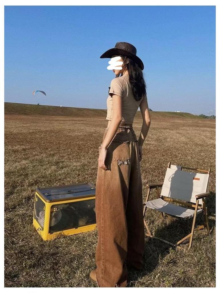 Женские джинсы American Retro Gradient: Большой размер, облегающий, широкий, с необработанным краем, для весны и осени