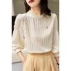 Весна и Осень Волнистый Узор Текстура Чувство Дизайна Деревянное Ухо Маленький Воротник-стойка Рубашка Французский Пуловер Маленькая Рубашка Женская