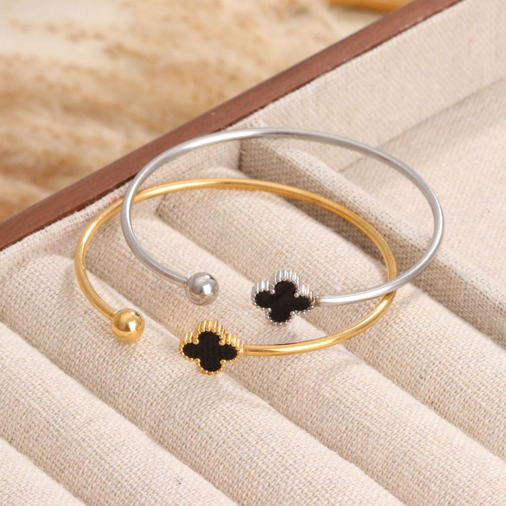 Модный простой индивидуальный браслет с четырьмя листочками клевера, ювелирные изделия из титановой стали, регулируемый женский браслет — купить товар онлайн с бесплатной доставкой по всему миру!