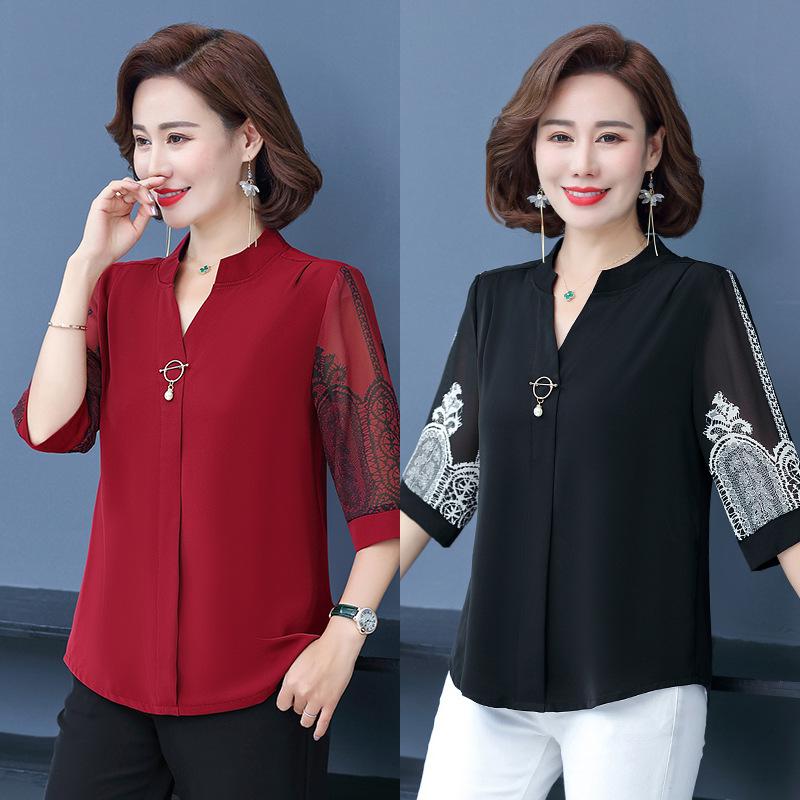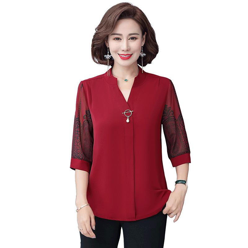 Рубашки Топы Женские Блузки Офисные Шифоновые Рубашки Элегантные V-образные Вырезы Рукав Семь Четвертей Женские Топы Blusas