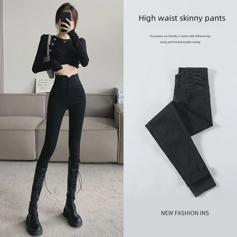 Ощутите максимальный комфорт и стиль с этими женскими черными джинсами скинни.. Эти джинсы с ультравысокой талией и застежкой на пуговицы изготовлены из хлопкового эластичного денима, который обеспечивает идеальную посадку и исключительную гибкость.. Приподнятый крой подчеркивает силуэт и обеспечивает комфорт в течение всего дня.. Эти джинсы в спортивном стиле идеально подходят как для повседневных прогулок, так и для активного отдыха, сочетая в себе функциональность и удобную посадку.