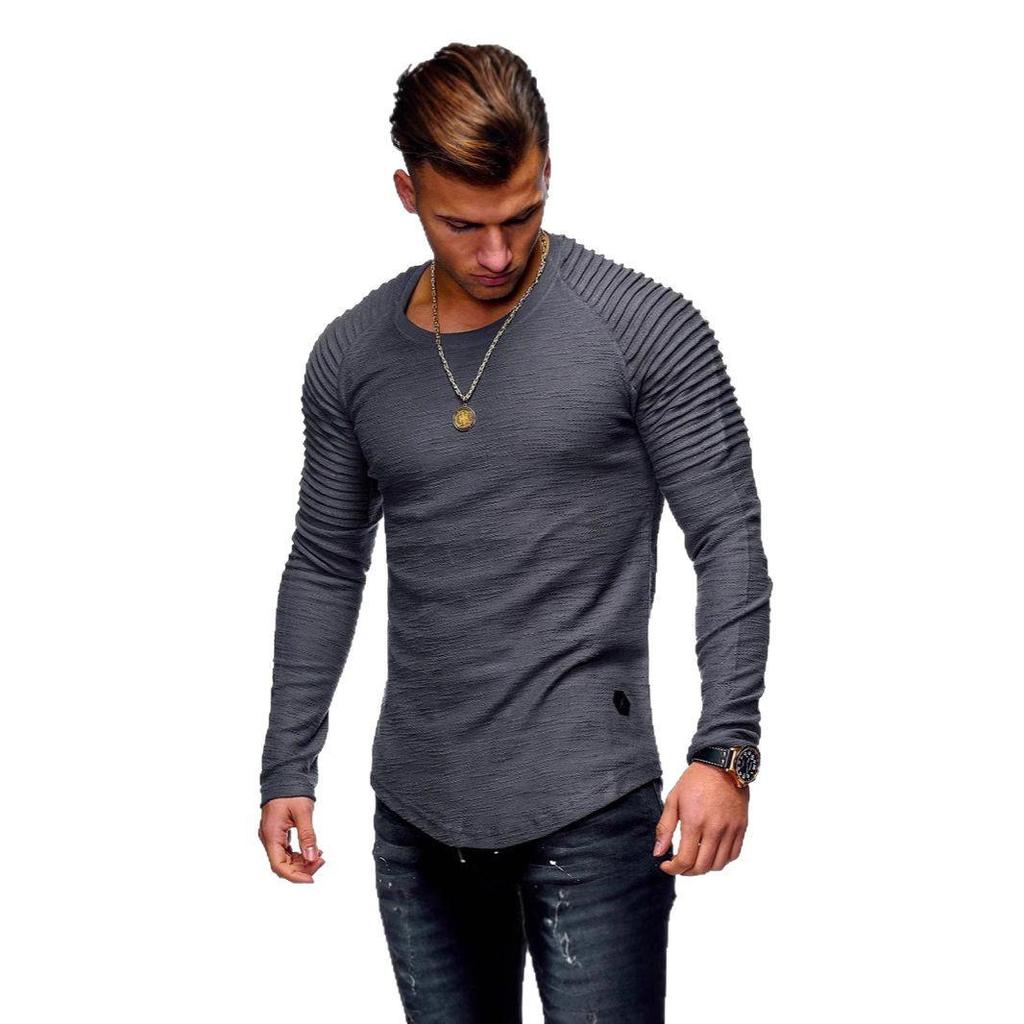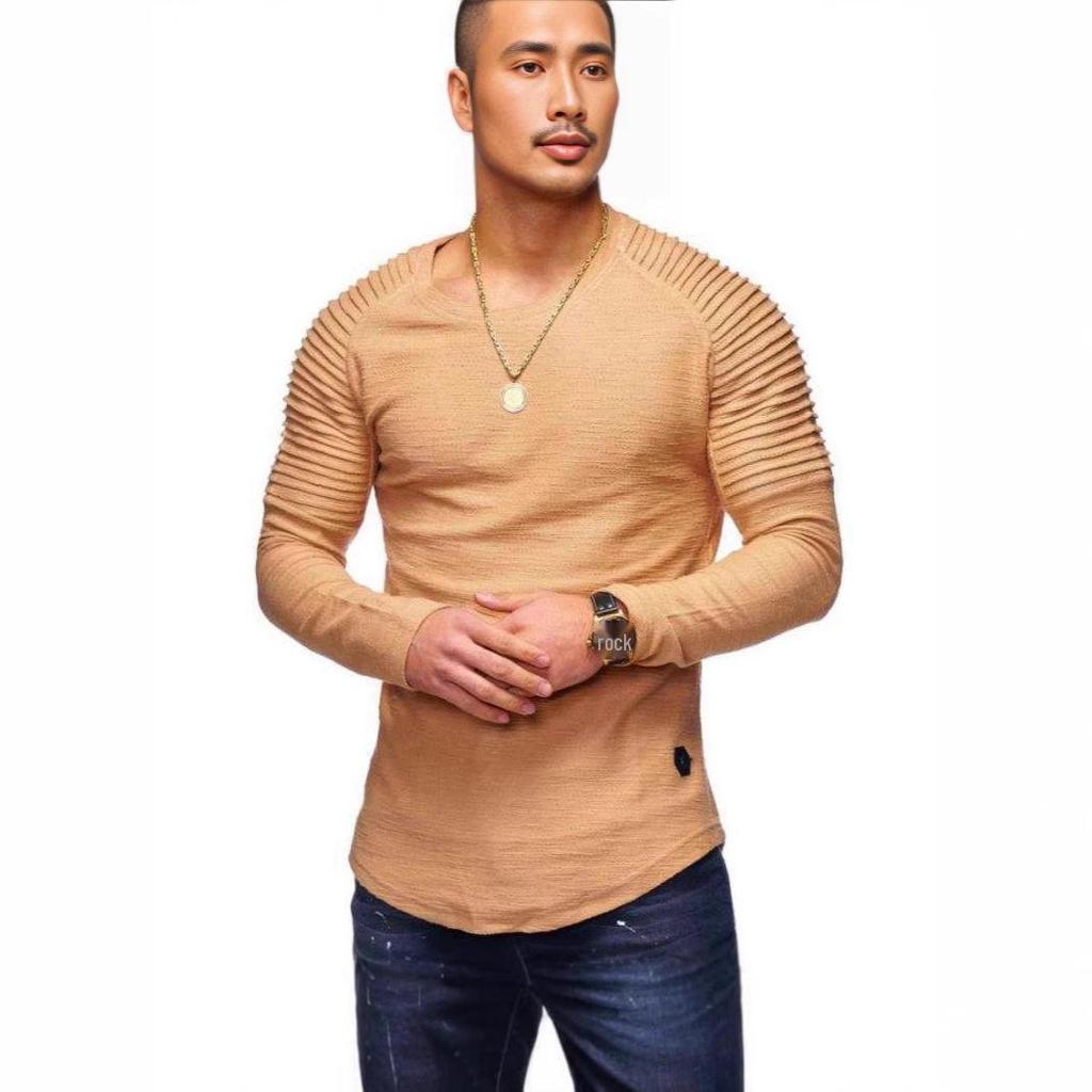 Откройте для себя элегантное и стильное очарование нашей мужской футболки Slim Fit с длинным рукавом реглан.. Изготовленный из прочного полиэфирного волокна, этот топ имеет однотонный дизайн, который легко дополнит любой гардероб.. Круглый вырез горловины придает изделию классический вид, а плиссированные рукава — уникальную модную деталь.. Эта универсальная футболка идеально подходит для ношения в сочетании с другими вещами или отдельно, она прекрасно подходит как для весны, так и для осени, обеспечивая комфорт и стиль в любом случае.