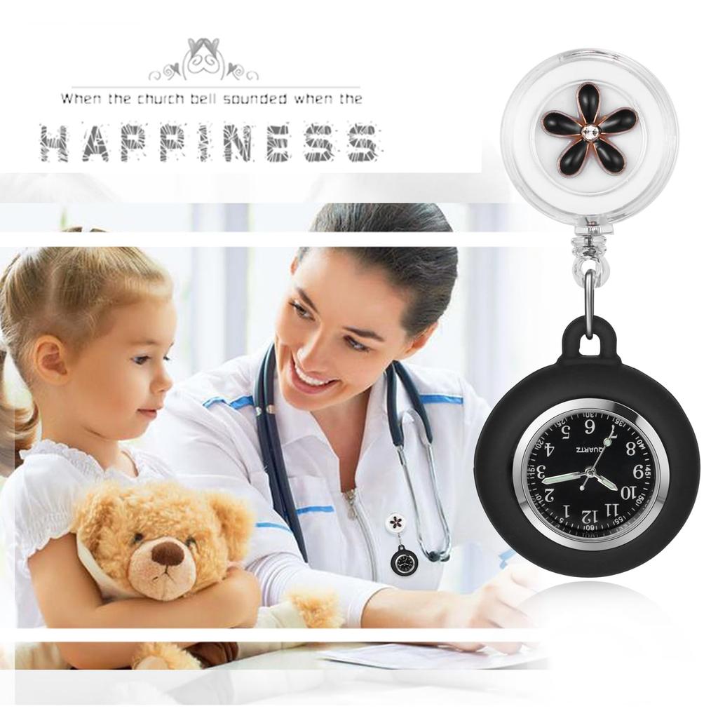 Часы для медсестры с силиконовым зажимом, аналоговые, симпатичные, с цветком, перевернутые, водонепроницаемые карманные часы, карманные часы, кварцевые часы, товары для медсестер, идеальный подарок для
