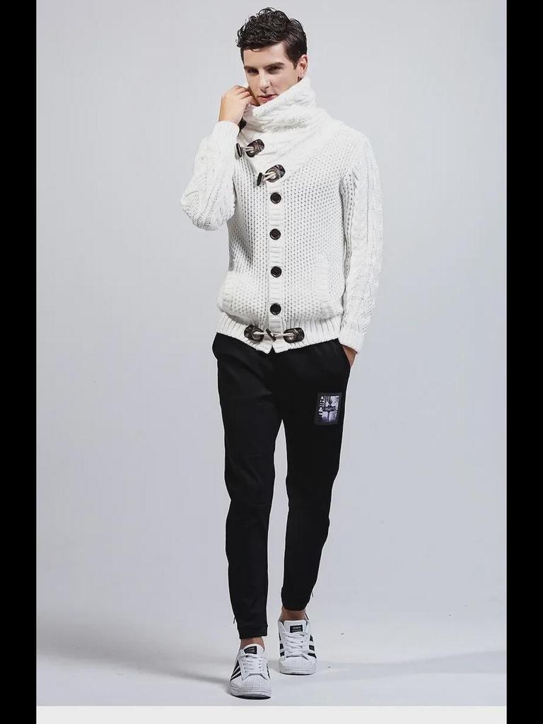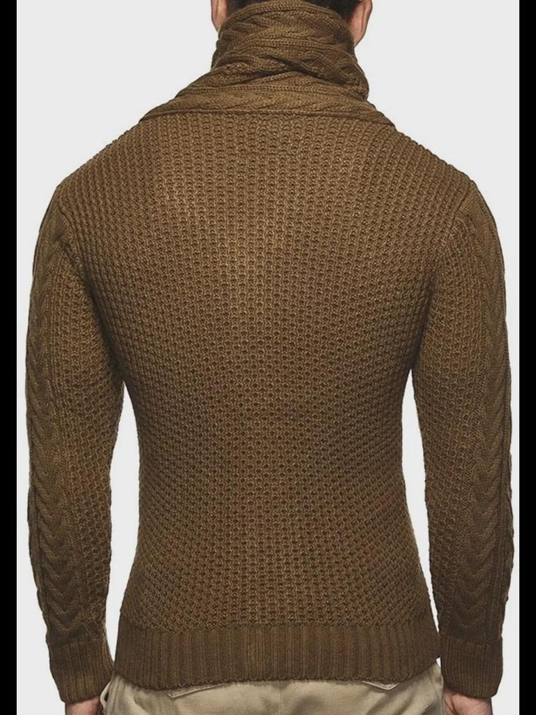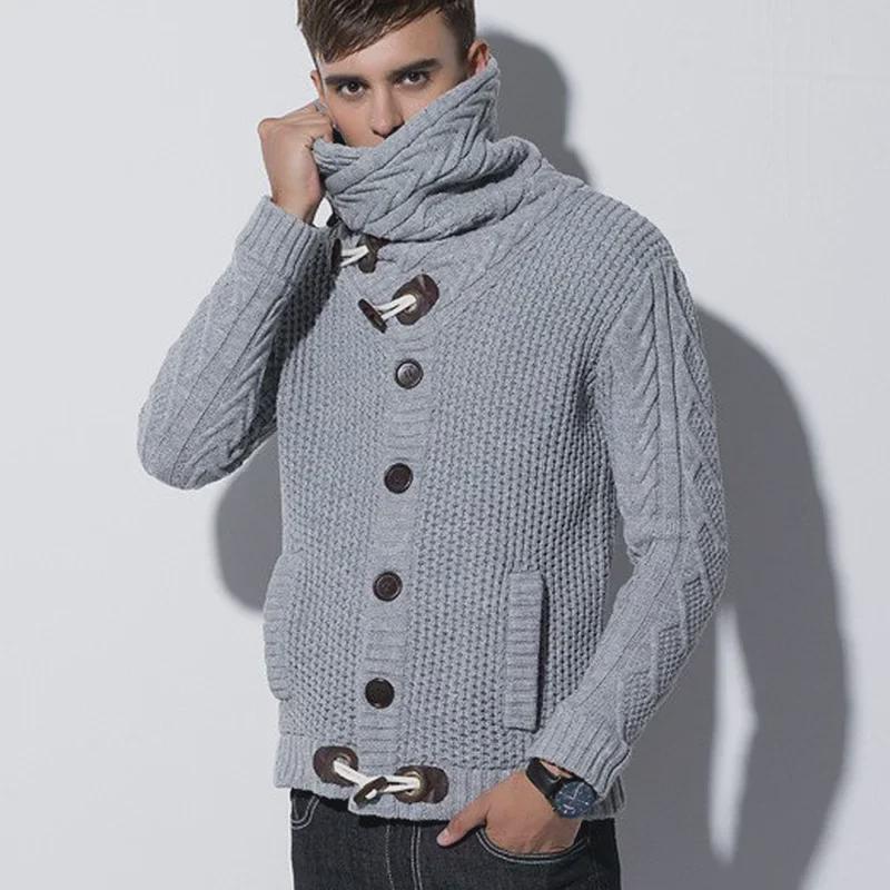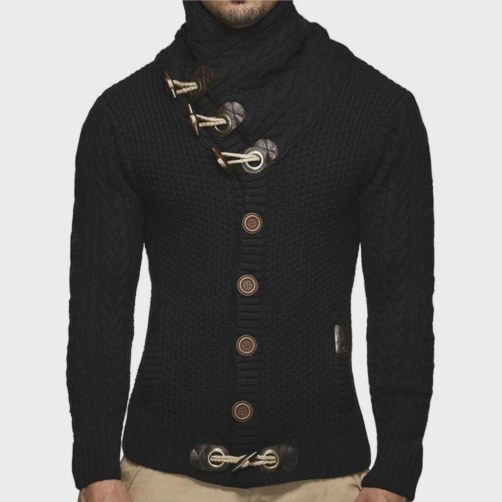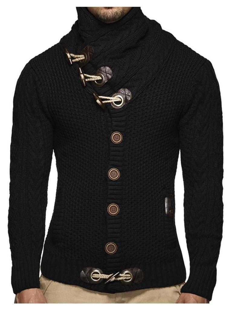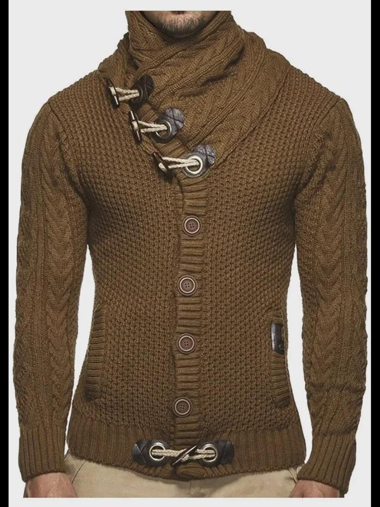 Этот стильный кардиган идеально подходит как для осени, так и для зимы. Высокий воротник и воротник-шарф обеспечивают дополнительное тепло и элегантность.. Изделие облегающего кроя подчеркивает ваш силуэт, а длинные рукава обеспечивают комфорт.. Стандартная толщина кардигана обеспечивает ощущение уюта, не будучи при этом слишком громоздким.. Изготовлен из высококачественной смеси полиэстера и хлопка, что обеспечивает прочность и мягкость на ощупь.. Пуговицы из рога добавляют нотку изысканности, делая этот кардиган универсальным дополнением к любому гардеробу.