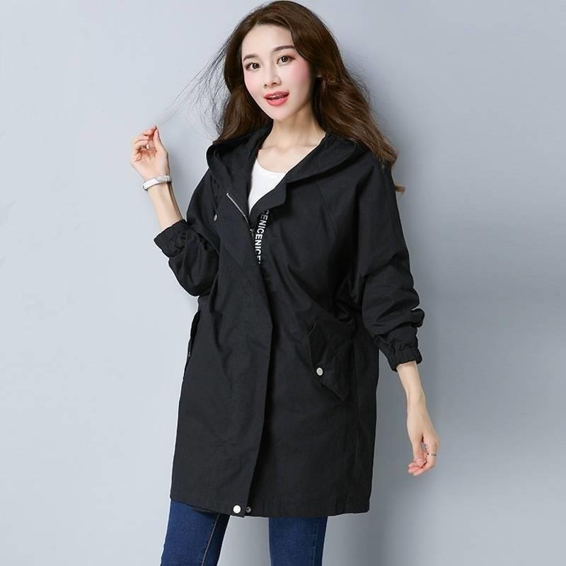 Ветровка с капюшоном на молнии для женщин весна и осень Fat Mm Plus 200 Catties Slim Top для женщин Куртка средней длины