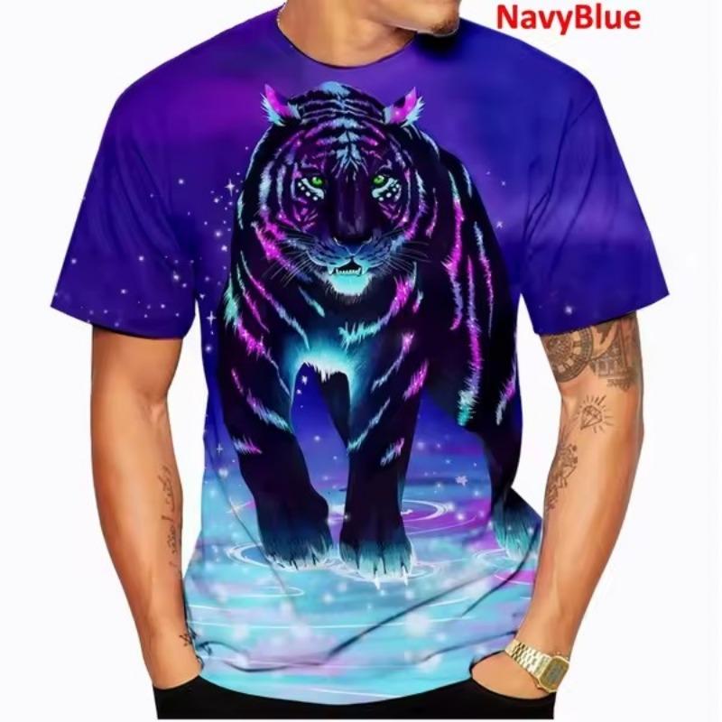 Крутая модная футболка с 3D принтом животного и тигра, мужская повседневная футболка с коротким рукавом, мужские рубашки с круглым вырезом