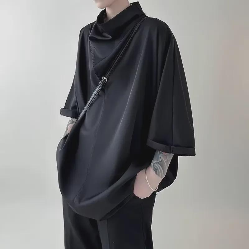 2024 Мужская футболка в китайском стиле высокого качества с короткими рукавами и высоким воротником, свободная драпировка