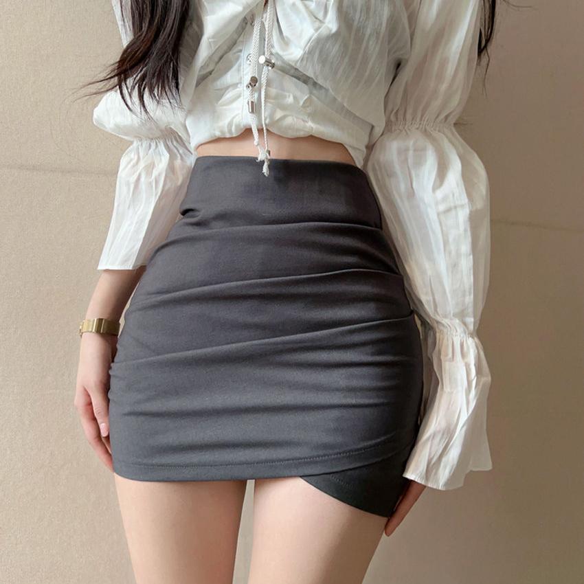 Юбки женские, прикрывающие бедра, шикарные, с высокой талией, складки, нерегулярные, модные, уличные, милые, пикантные, для девушек, универсальные, Ulzzang, летние, облегающие