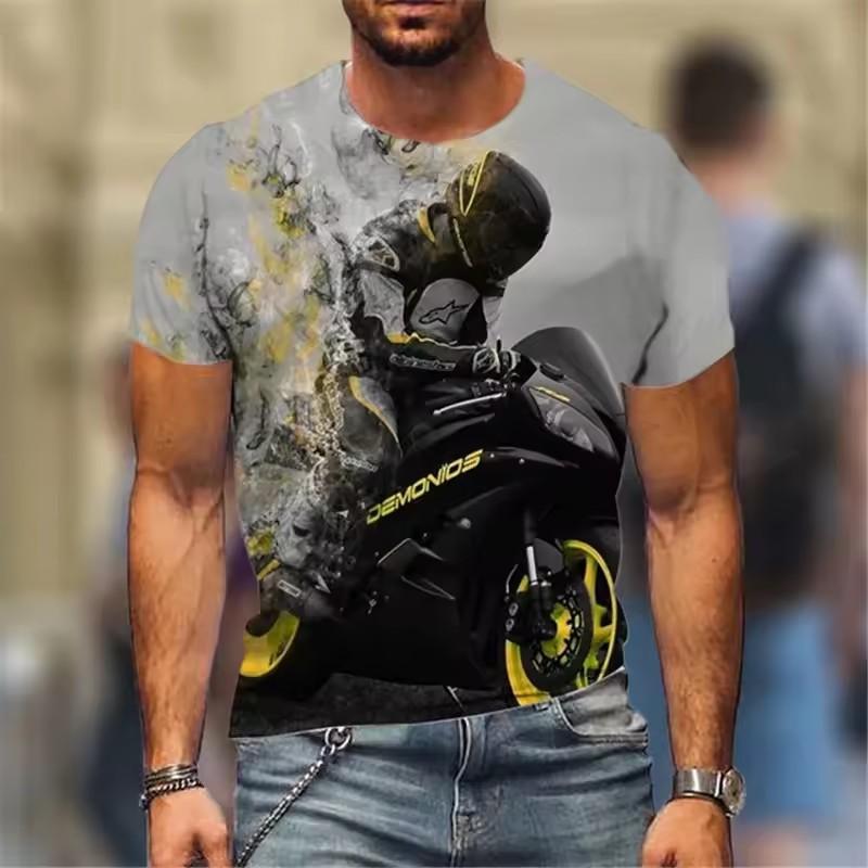 Модные уличные футболки для мужчин с мотоциклами, популярные футболки с коротким рукавом и принтом локомотива в 3D-стиле, топы для мужчин в стиле хип-хоп и мото