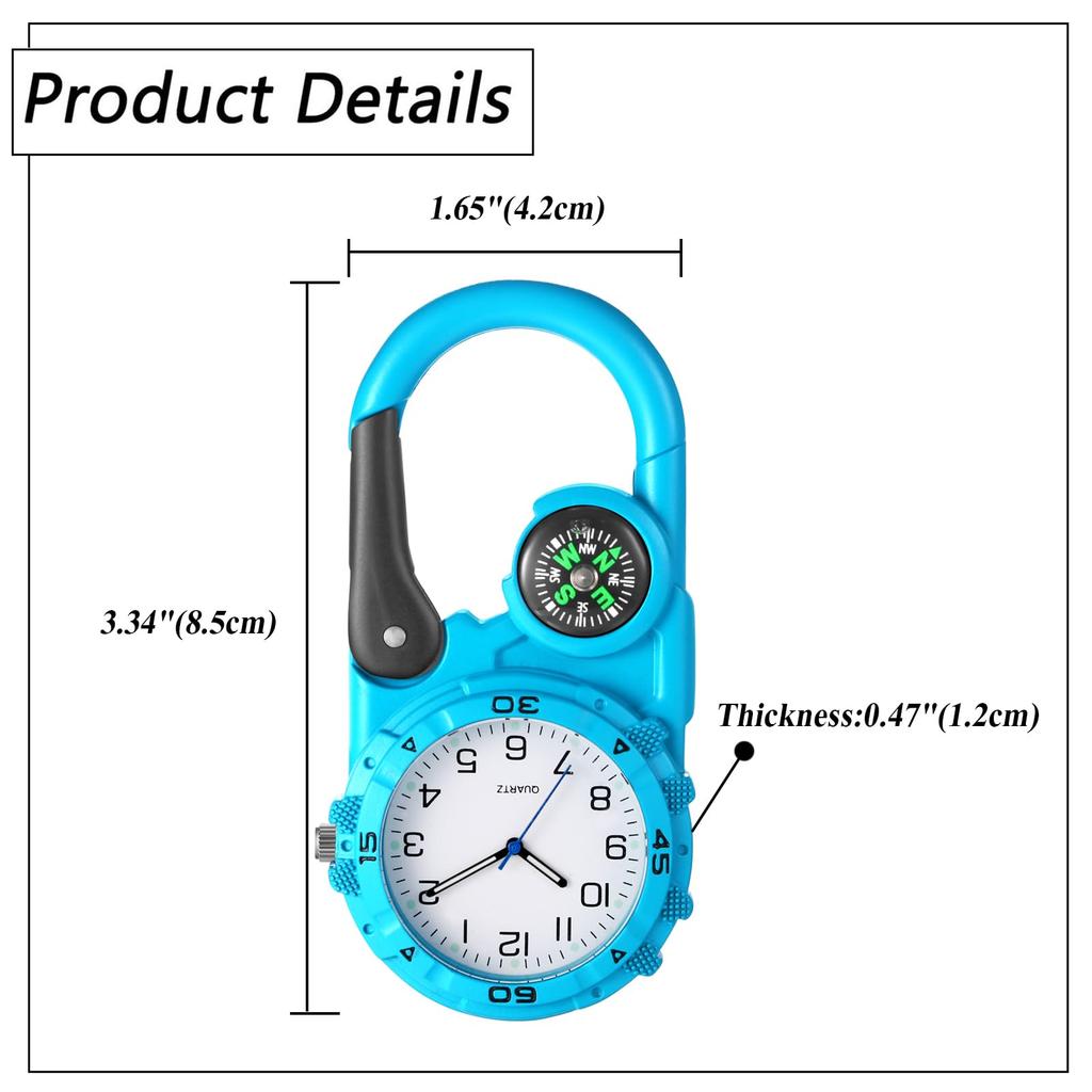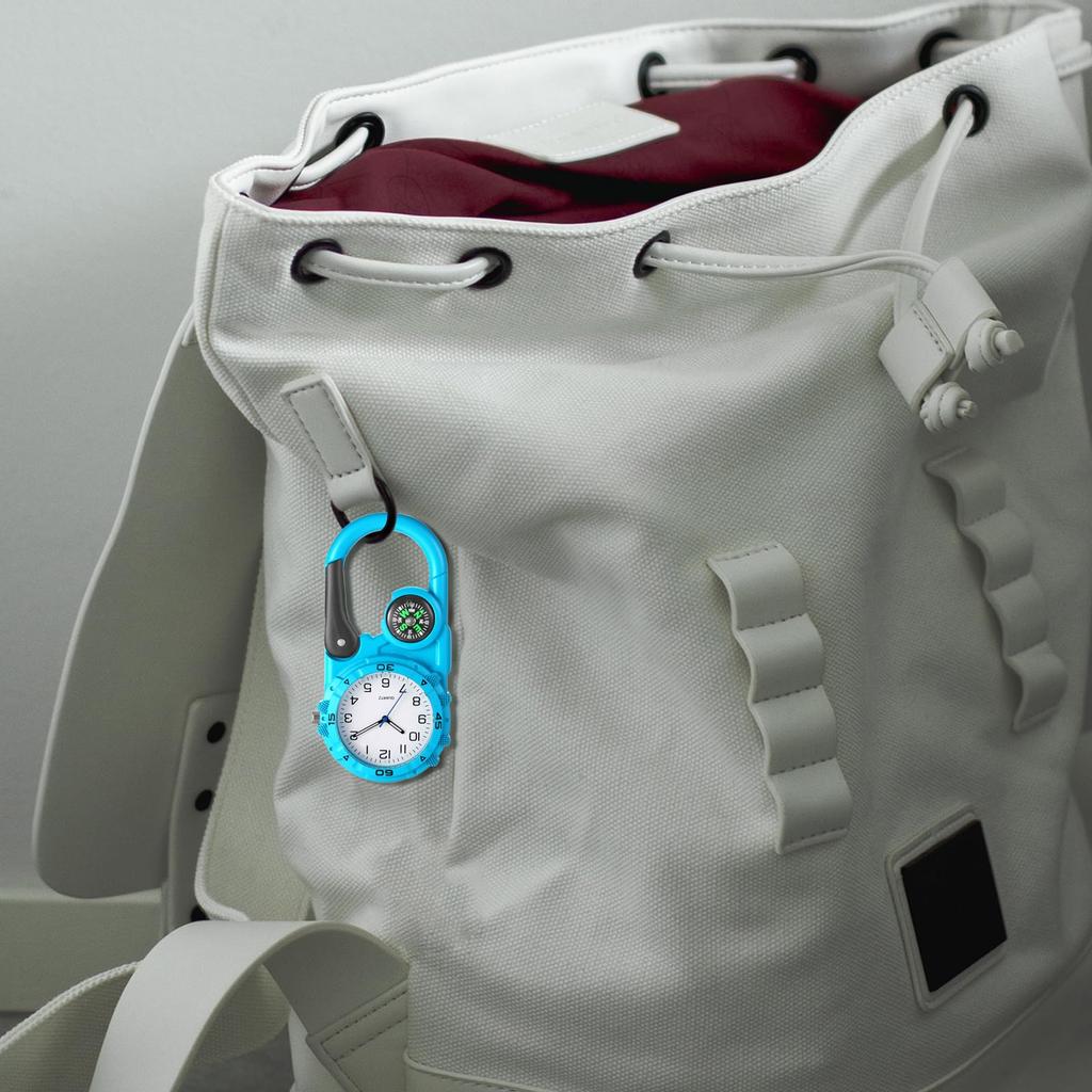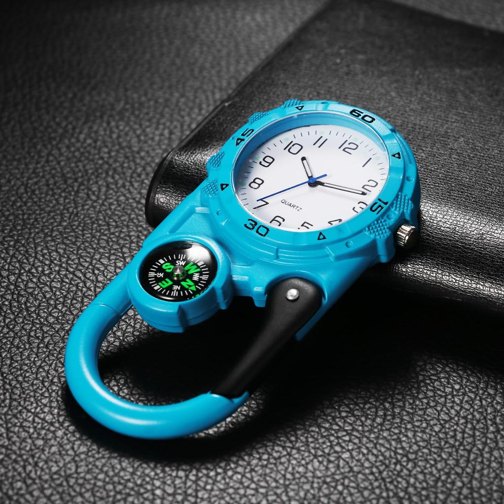 Часы с зажимом, карабином, часы с карабином, компас, аналоговый дисплей, брелок, кварцевые часы, часы с зажимом, компас, карманные часы для отдыха на открытом воздухе, синие, унисекс