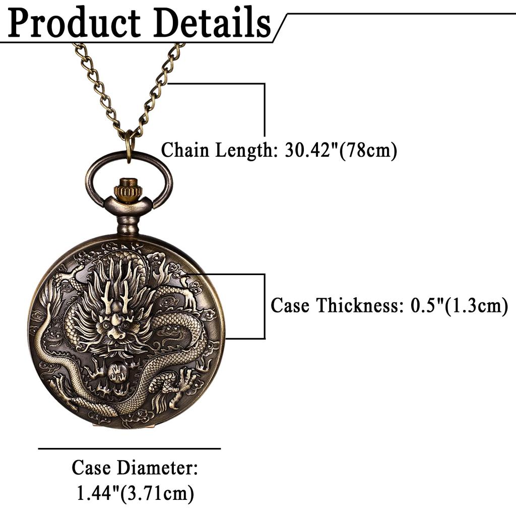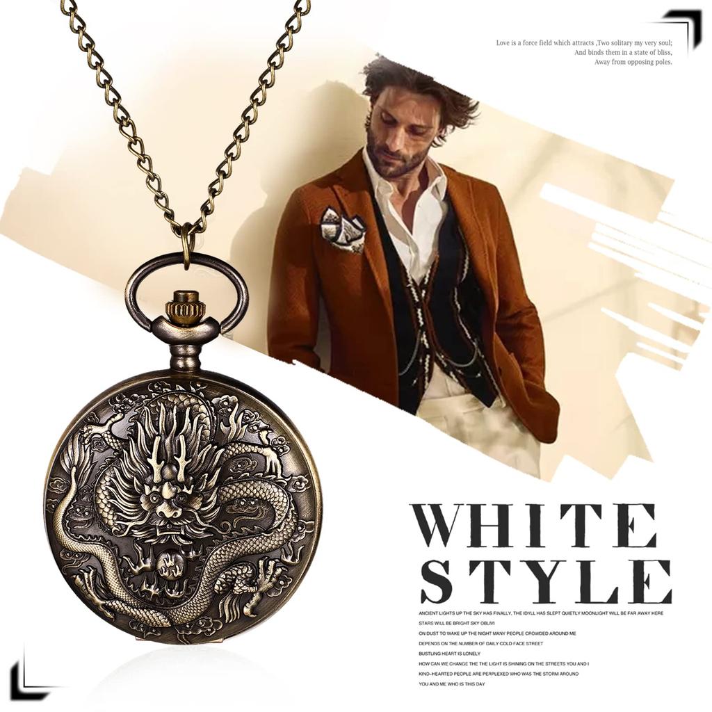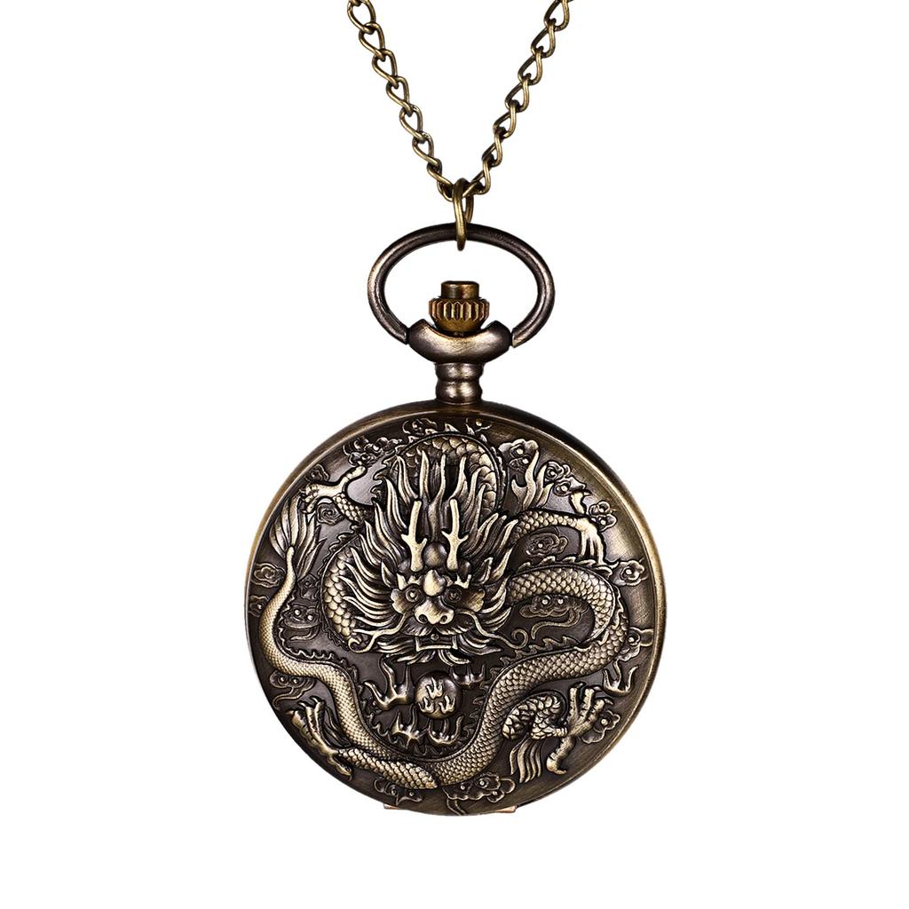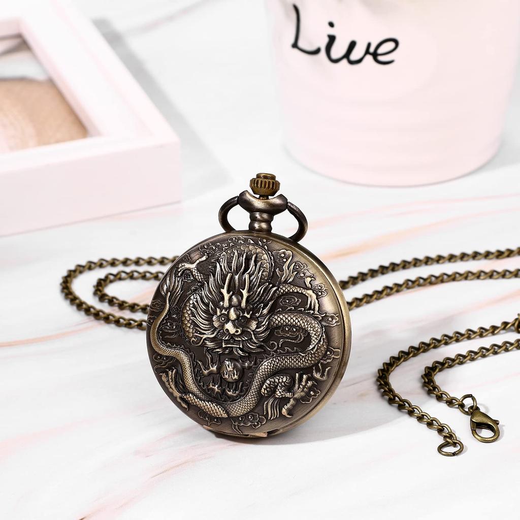 Карманные часы Dragon Retro Antique Analog с крышкой Водонепроницаемые кварцевые часы-подвеска Часы-ожерелье Карманные часы с цепочкой Модный аксессуар
