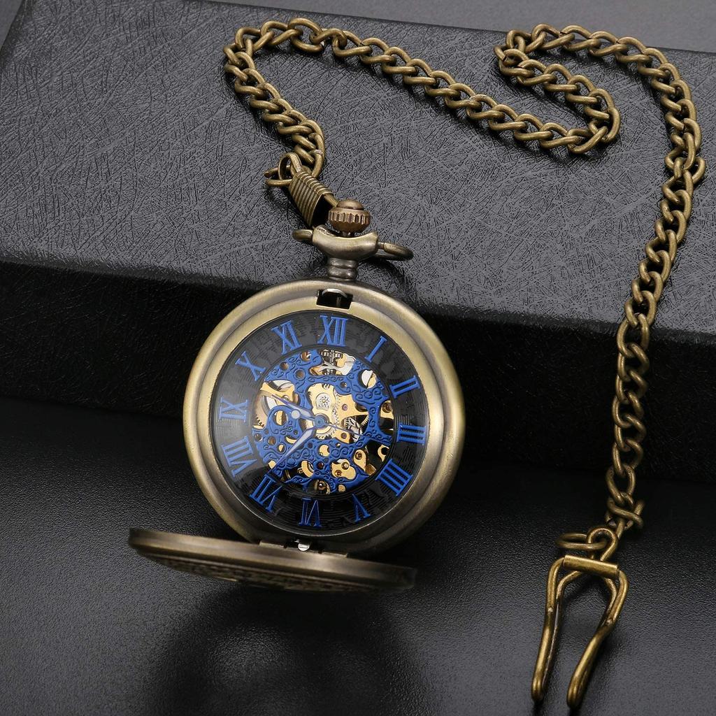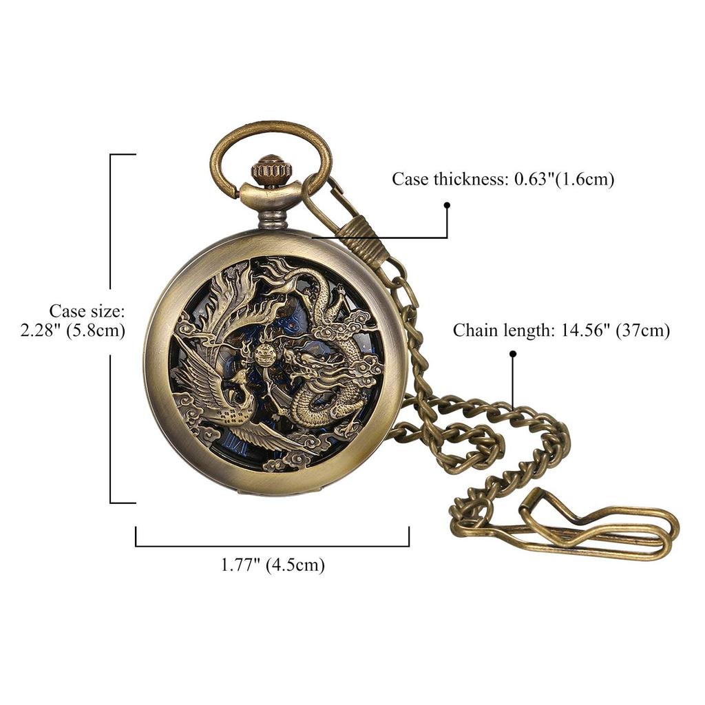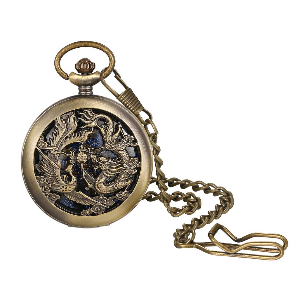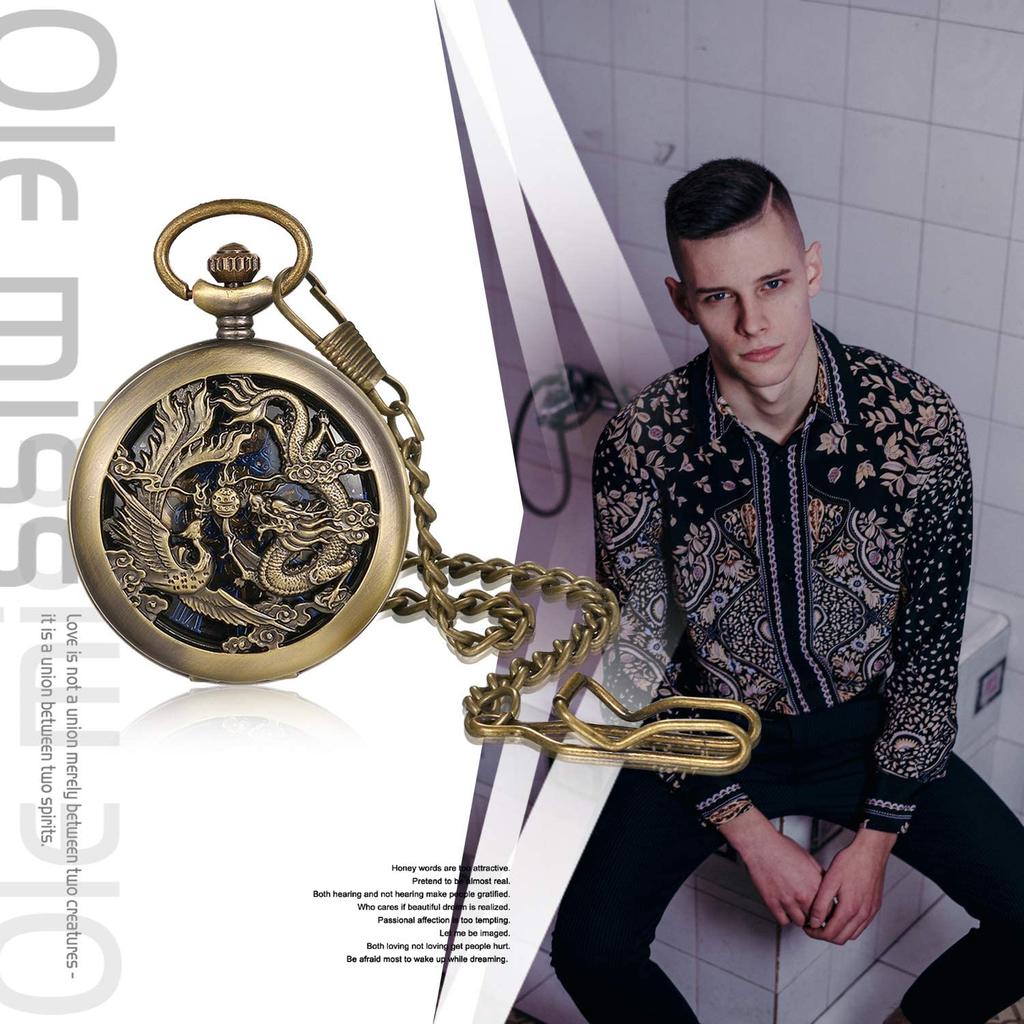 Карманные часы Lancardo с ожерельем, автоматические механические, ретро, античный римский математический циферблат, универсальные для мужчин и женщин, повседневные, медного цвета, с драконом, мужские