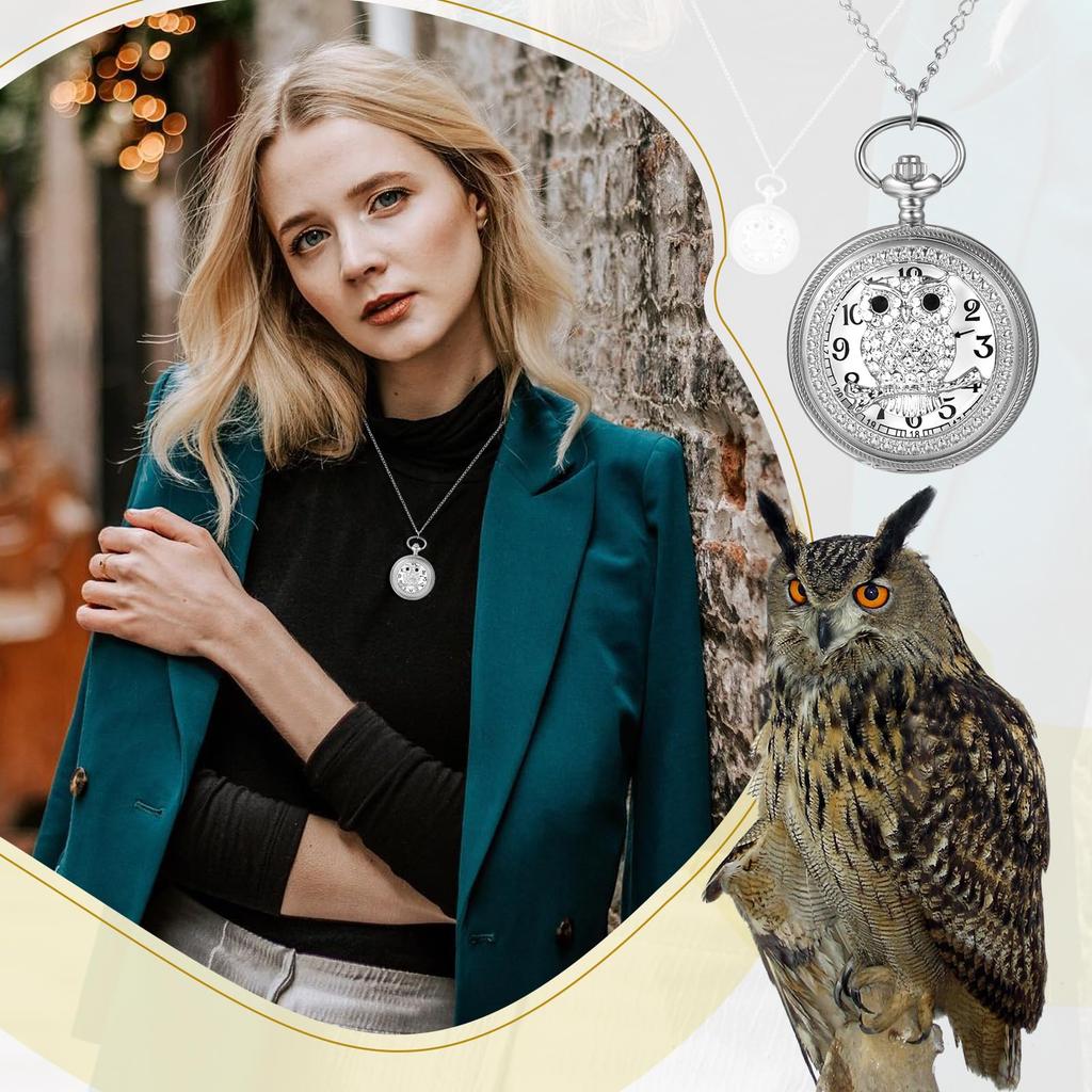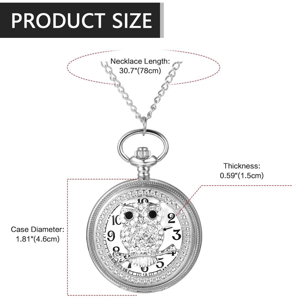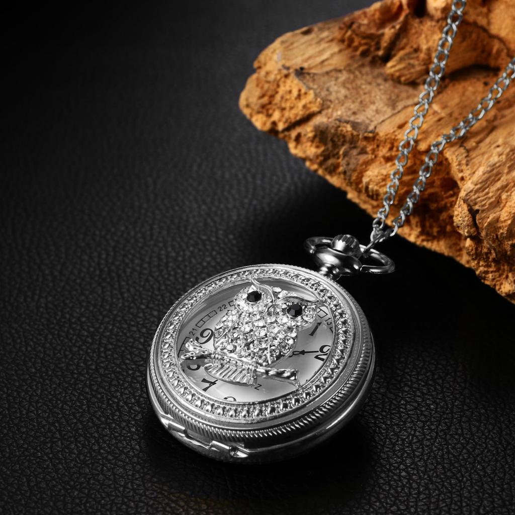 Карманные часы Сова Милый скелет Водонепроницаемые часы с подвеской Аналоговые карманные часы Ретро Стразы Ожерелье Цепь Серебро День рождения Годовщина Рождество