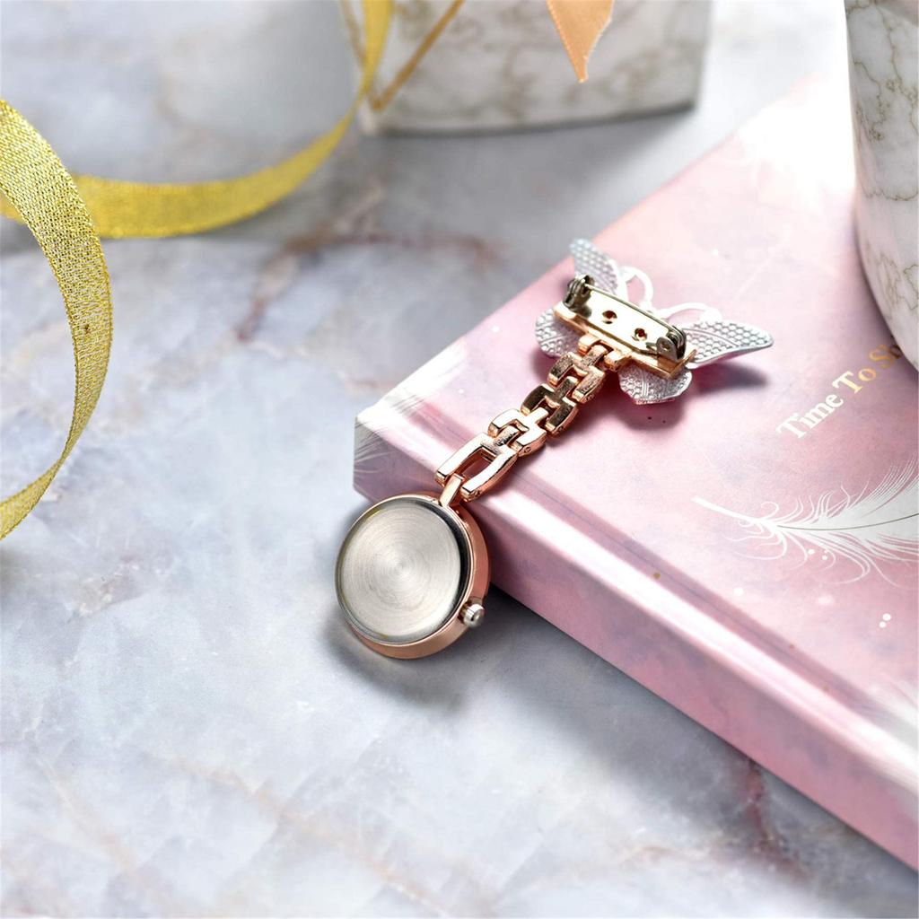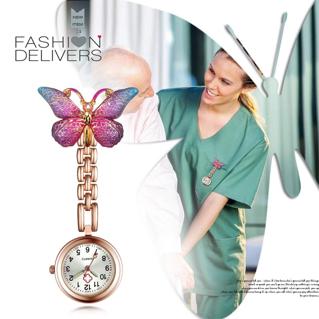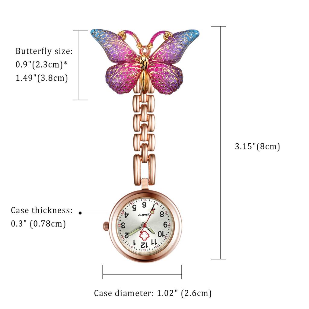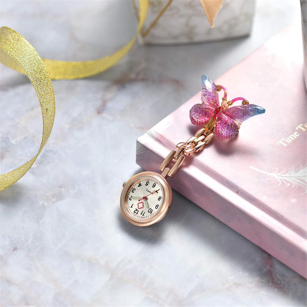 Lancardo Watch Nurse Inverted Watch Pocket Watch Analog Nurse Watch Clip Pocket Watch Butterfly Rose Gold Present