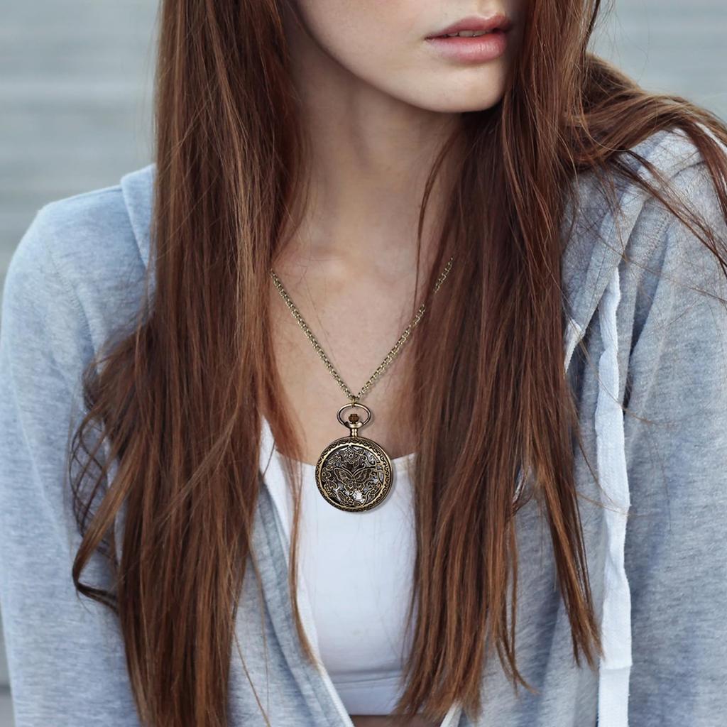 Карманные часы с бабочкой, старинные, скелетон, женские, ретро, симпатичные, карманные часы, водонепроницаемые, подвеска, часы, ожерелье, цепочка, бронза, день рождения, годовщина, Рождество