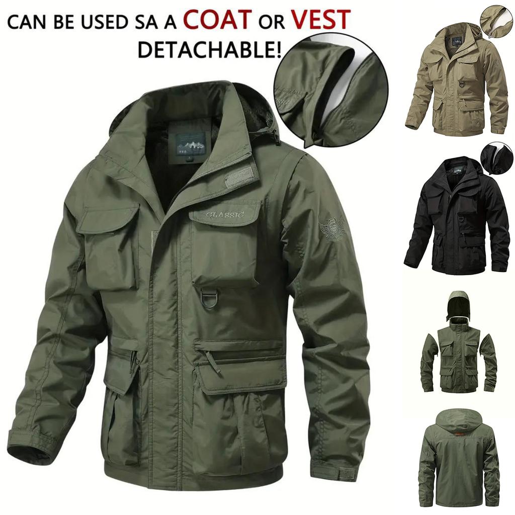 Ветрозащитная куртка с капюшоном, мужская повседневная водонепроницаемая куртка-карго с несколькими сумками, жилет, подходящий для активного отдыха