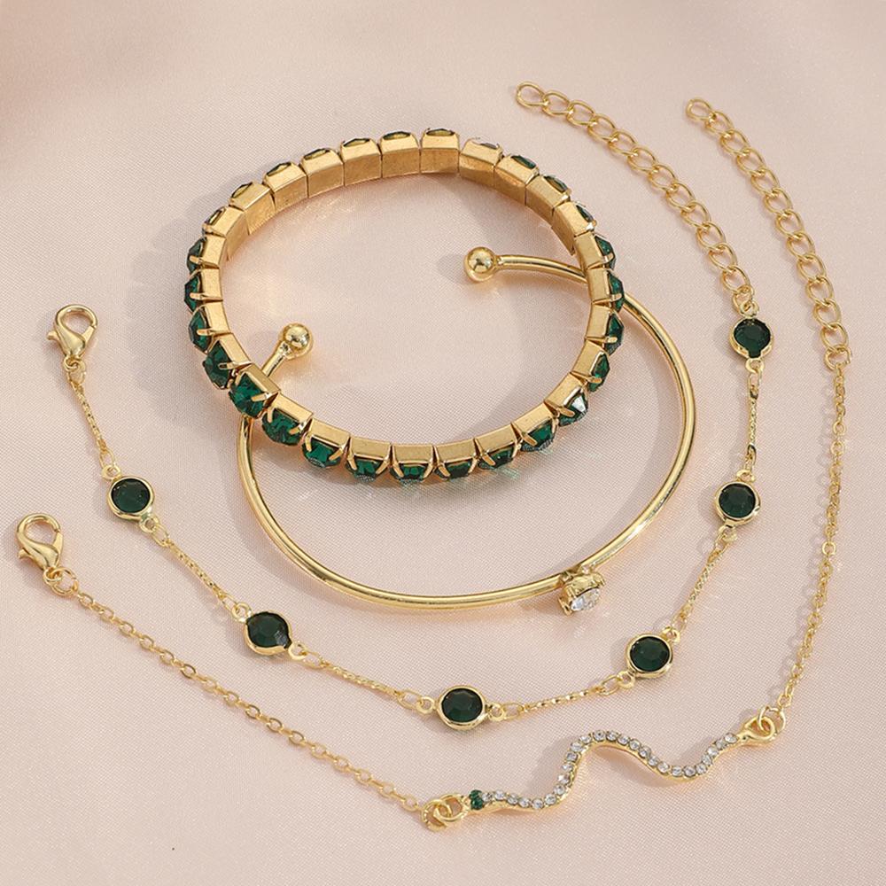 4 шт./комплект модный браслет с имитацией змеи и драгоценными камнями, стразы, полностью металлический браслет, набор для женщин, ювелирные изделия, подарки на день рождения