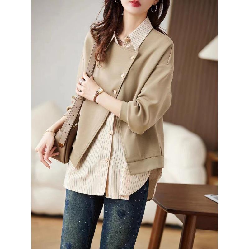 Свободный и большой размер Temperament Fake двухкомпонентный повседневный свитшот для женщин весна и осень новый нестандартный топ