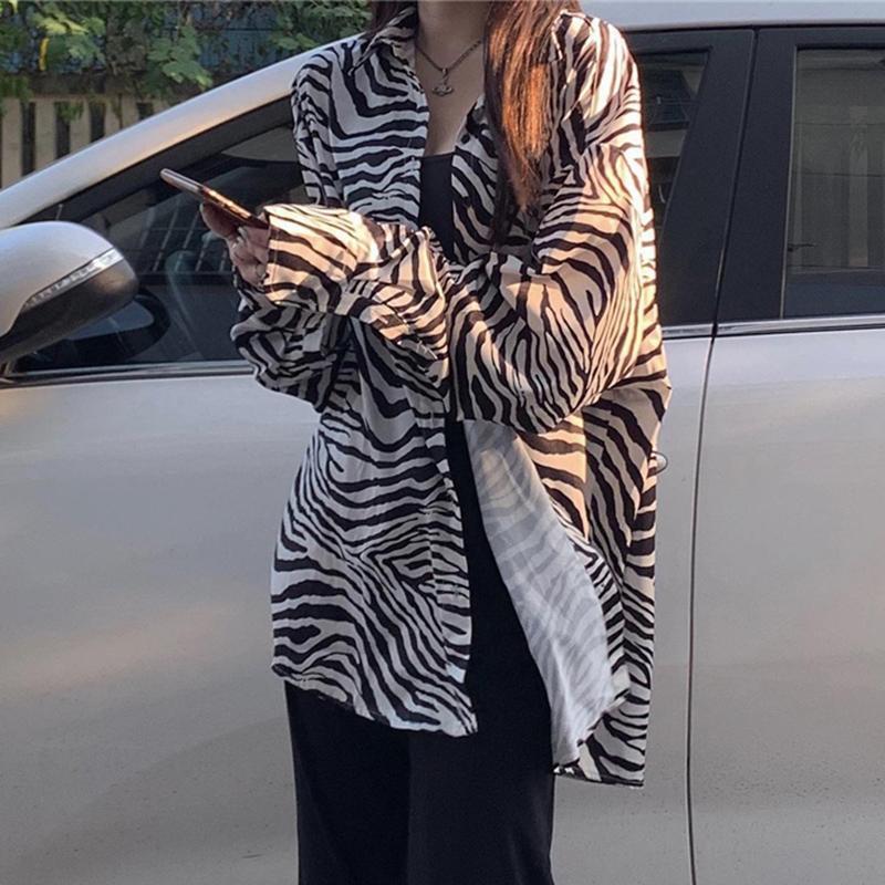 Женская солнцезащитная рубашка с узором «зебра» для верхней одежды. Универсальная рубашка в стиле ретро с оттенком раннего дизайна. Рубашка в нишевом стиле.