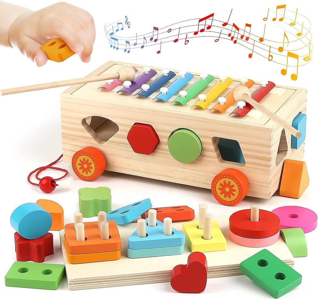Развивающая игрушка Монтессори Деревянная игрушка Монтессори игрушка 1 2 3 года Подарок на день рождения Игрушка для мальчиков Девочек Раннее развитие Распознавание форм Игрушка-ксилофон