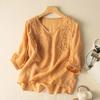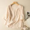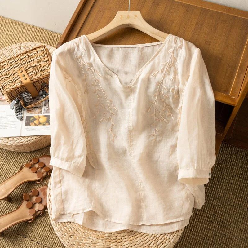 Женский летний свободный темпераментный литературный винтажный хлопковый льняной топ, тонкий удобный вышитый топ в этническом стиле