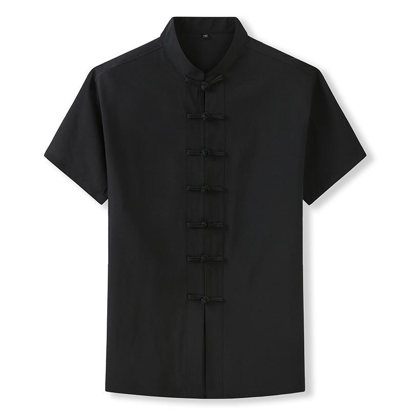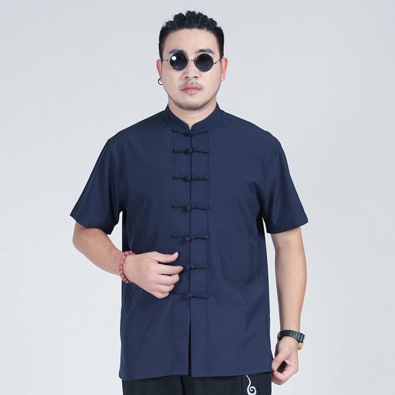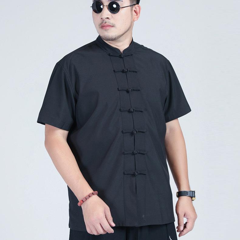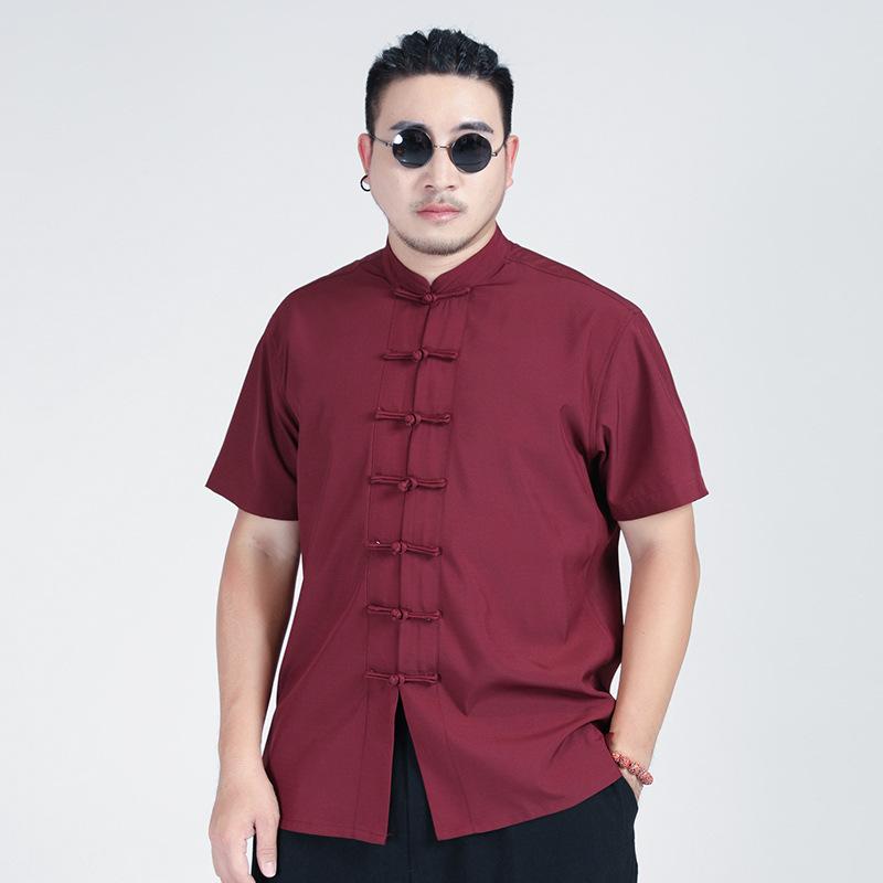 Большой размер мужской костюм Тан, рубашка с короткими рукавами, повседневная свободная рубашка Тан с пряжкой из диска, летняя рубашка для полных