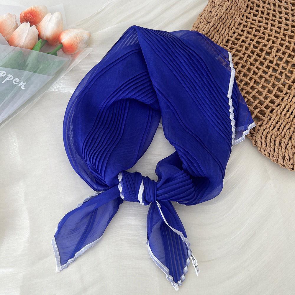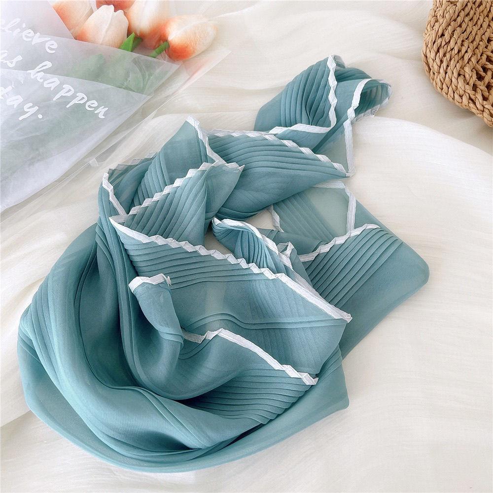 Однотонный плиссированный квадратный шарф для женщин, летний, свежий, дышащий, модный шарф для отдыха