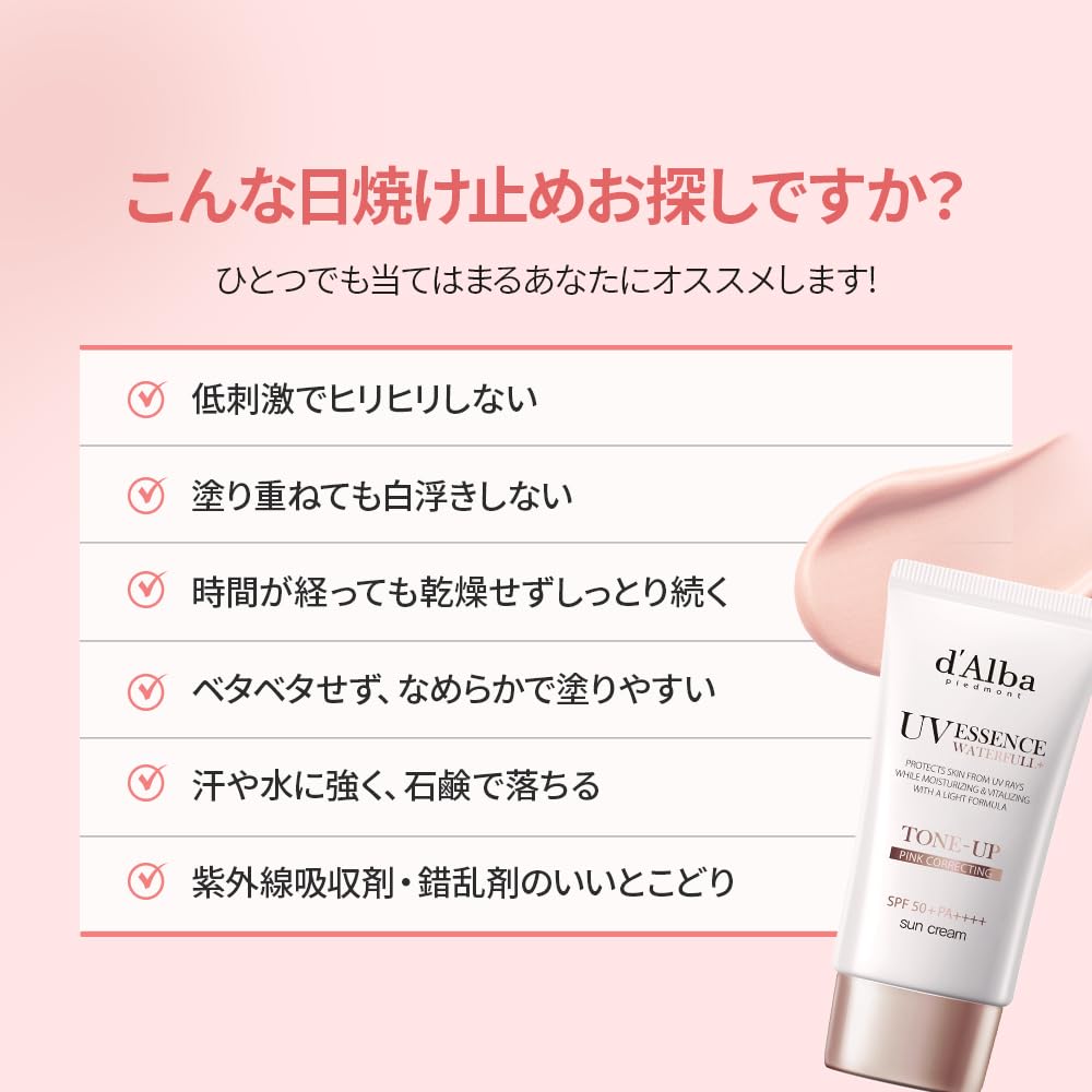 d'Alba Солнцезащитный крем Tone-Up SPF50+ PA++++, веганский водостойкий солнцезащитный крем, для лица и тела, для чувствительной/сухой кожи, защита от ультрафиолета, 50 мл