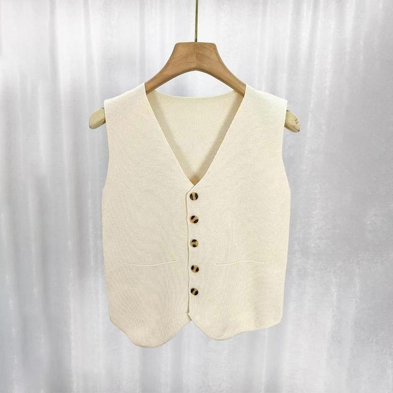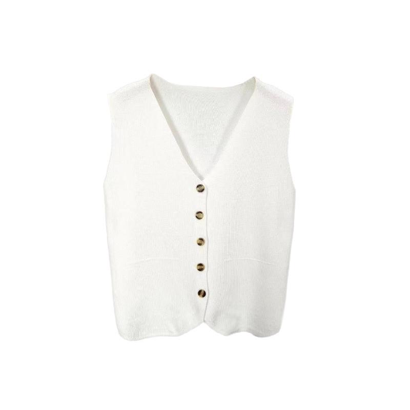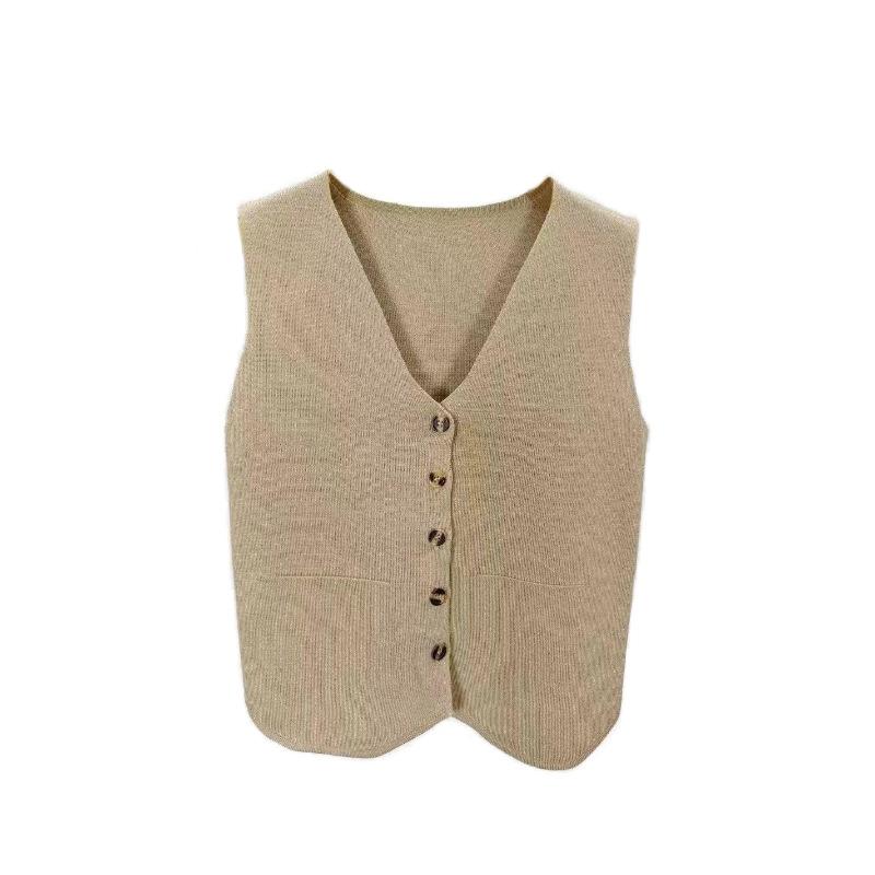 Французский темперамент V-образный вырез однобортный без рукавов повседневный трикотажный жилет для женщин