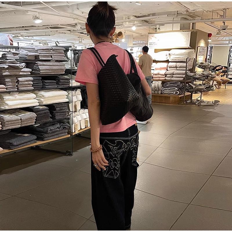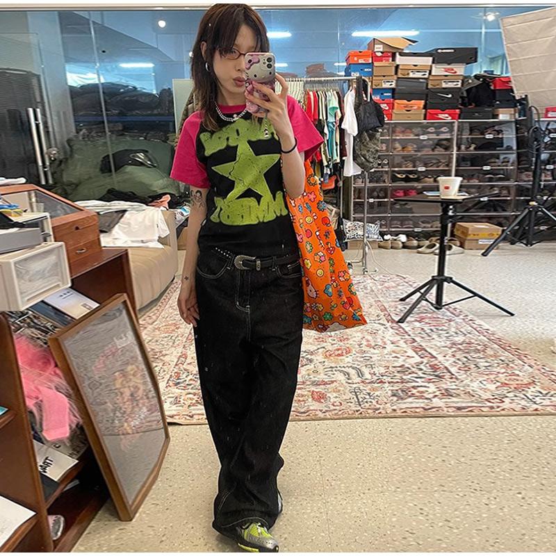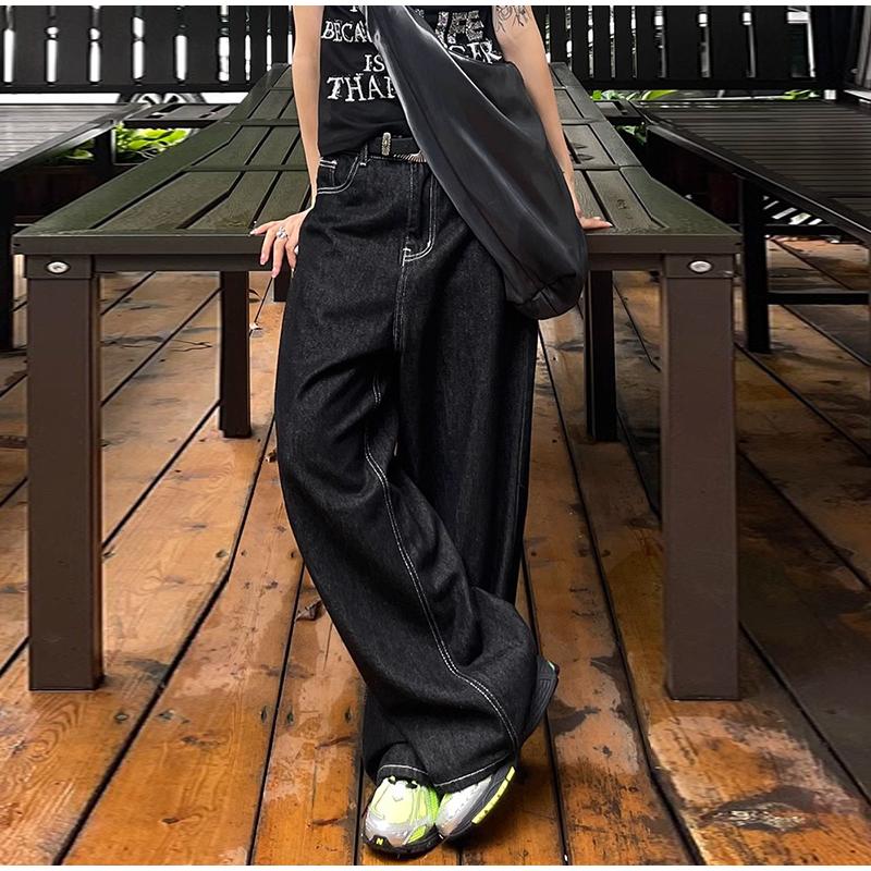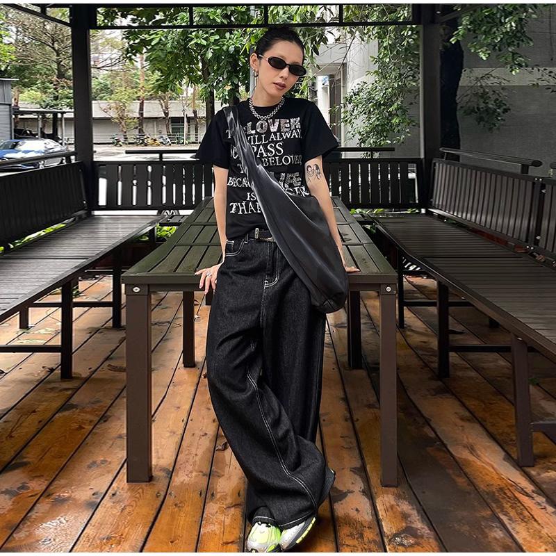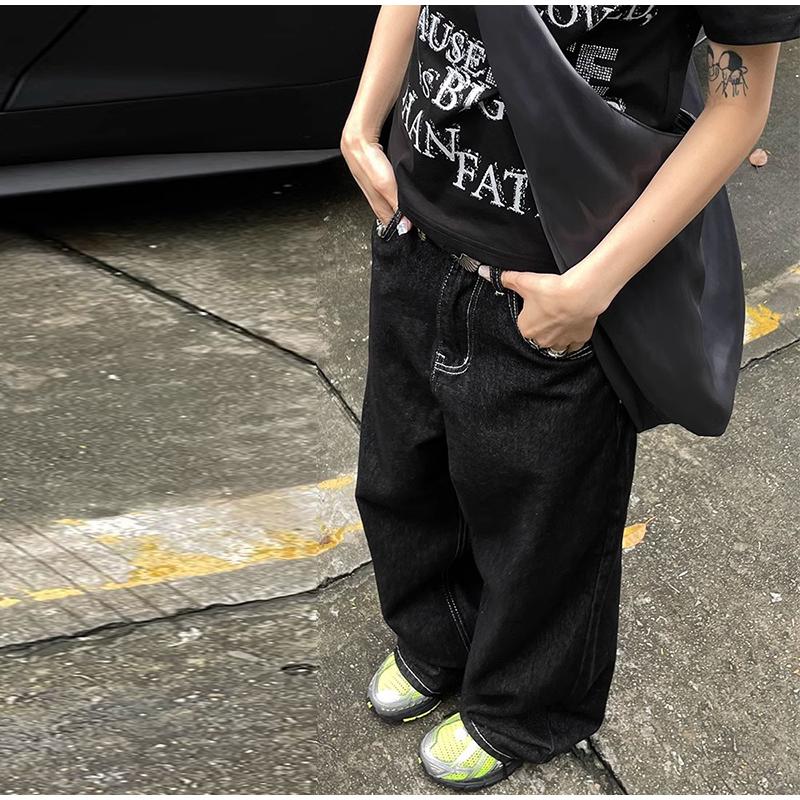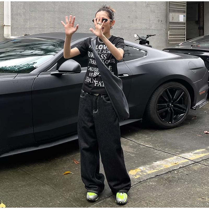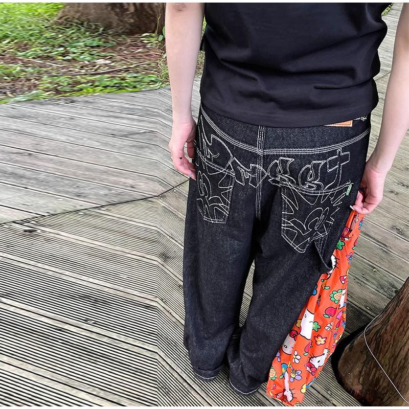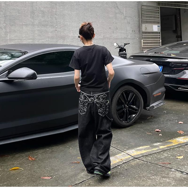 Винтажная вышивка Черные джинсы Женские свободные уличные брюки Y2k Мешковатые джинсовые брюки-бойфренды Хип-хоп Готические женские джинсы