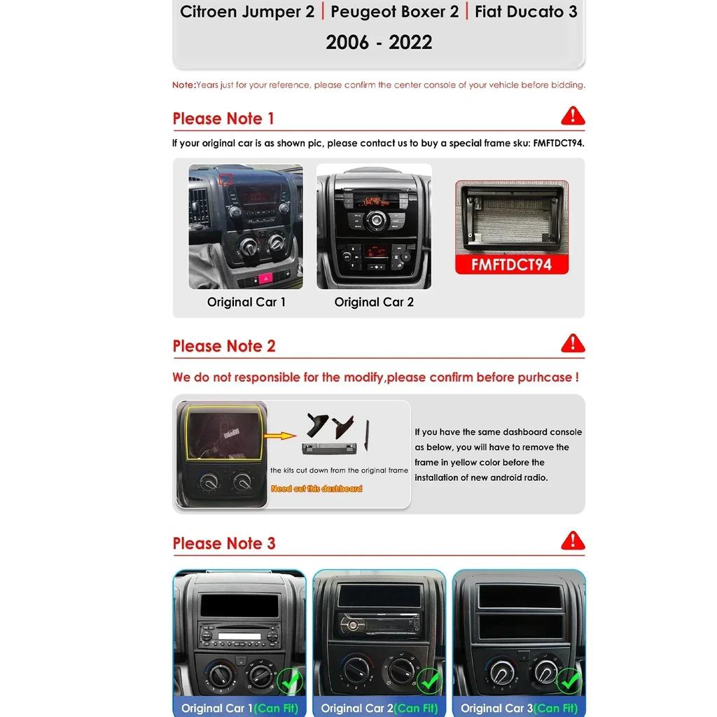 ③ Пожалуйста, проверьте размер и внешний вид вашего оригинального автомагнитолы, а также список совместимых устройств с информацией в уведомлении, прежде чем сделать заказ, чтобы избежать ошибки.; если требуется другой адаптер для установки, его необходимо заказать отдельно, за исключением описанных аксессуаров, показанных на рисунке.