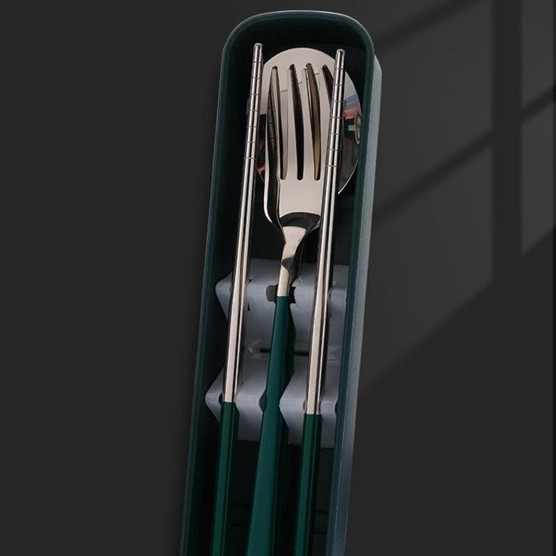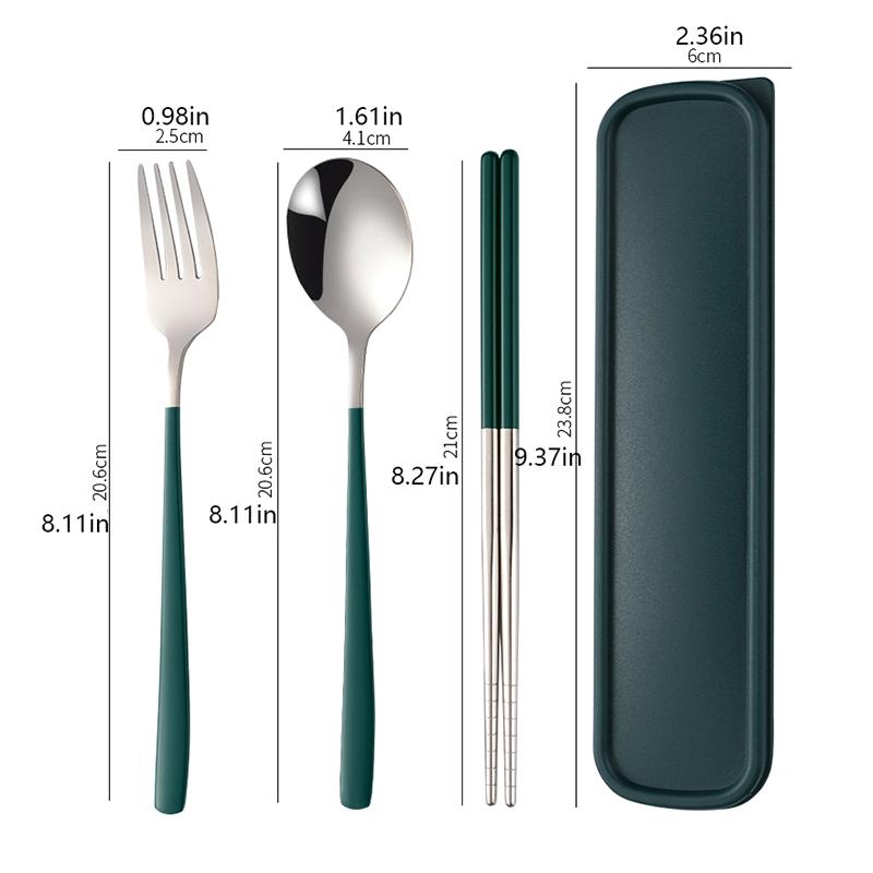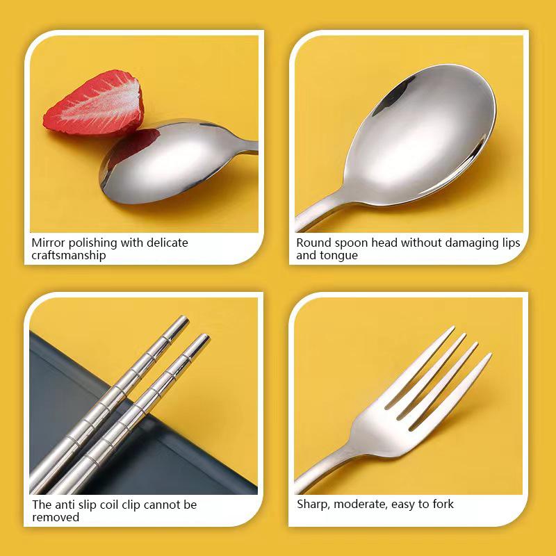 2. Практичная коробка столовых приборов: Мы предоставляем коробку столовых приборов для каждого набора дорожных столовых приборов, которая изготовлена из высококачественного пластикового материала, легкого по весу и подходящего по размеру, что может помочь вам хранить столовые приборы, содержать их в чистоте и легко носить с собой.