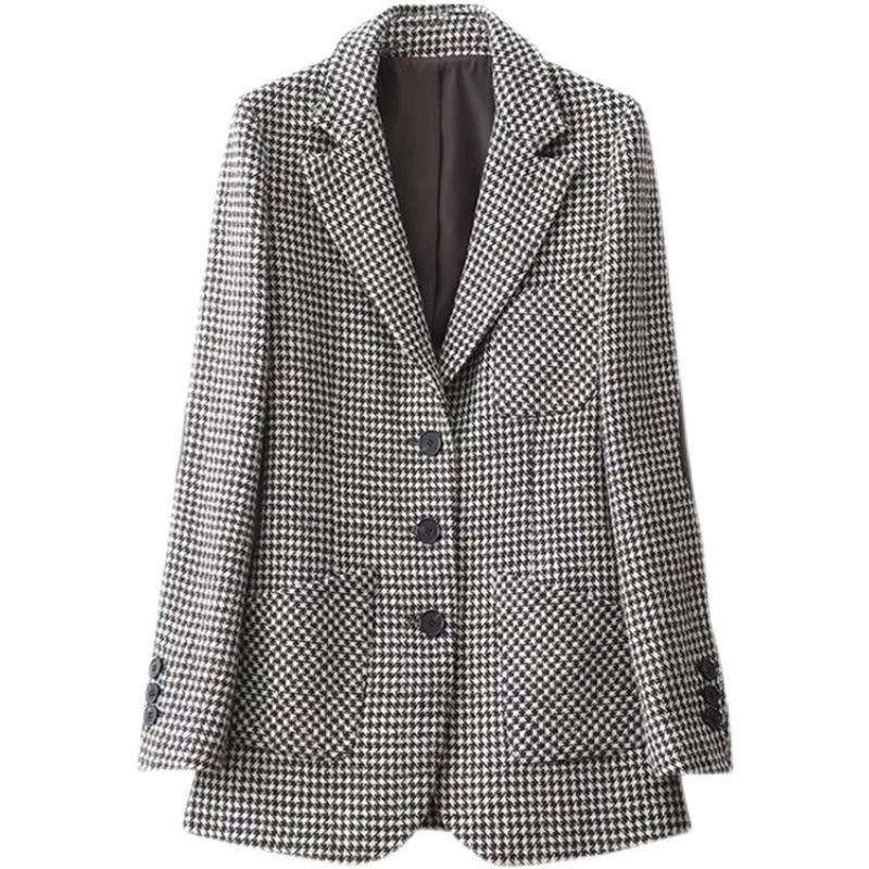 Весенний свободный шерстяной пиджак с узором «гусиная лапка» для женщин, облегающий пиджак средней длины в японском стиле, топ для темпераментного костюма