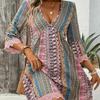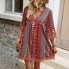 Винтажное принтованное платье для женщин, модное бохо, сексуальное, с V-образным вырезом, с длинным рукавом, свободные платья для женщин, летние праздничные платья, женская одежда, новинка