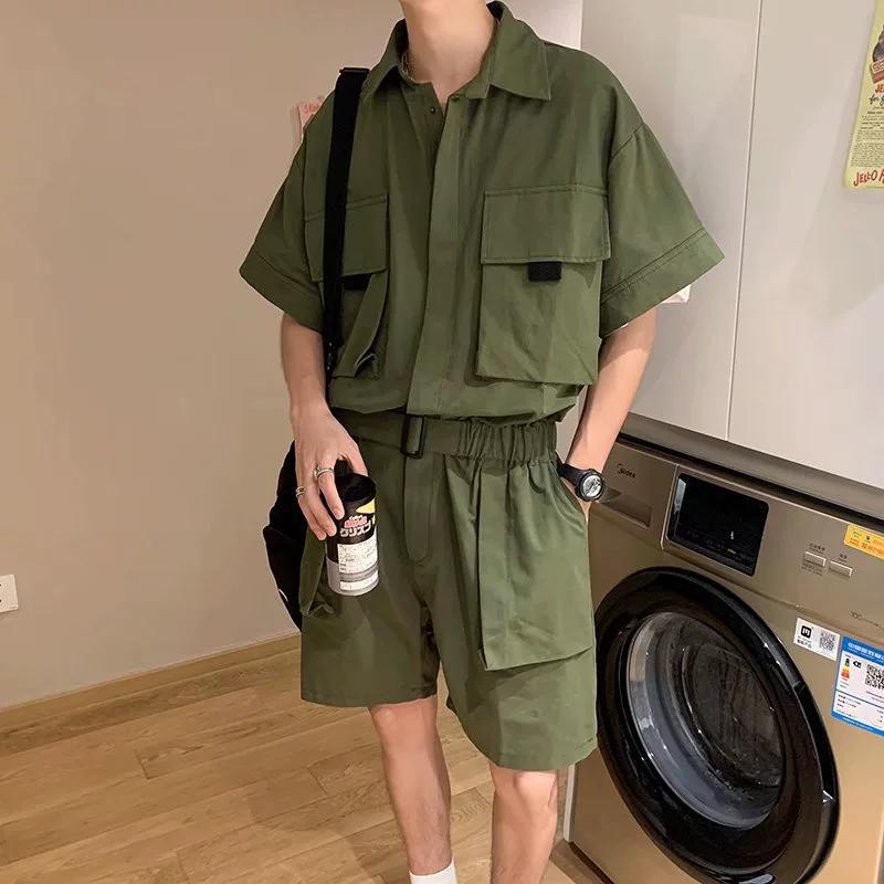 Летний мужской комбинезон с короткими рукавами и шортами, модный ретро-комбинезон в рабочем стиле, свободный комплект, ультратонкий