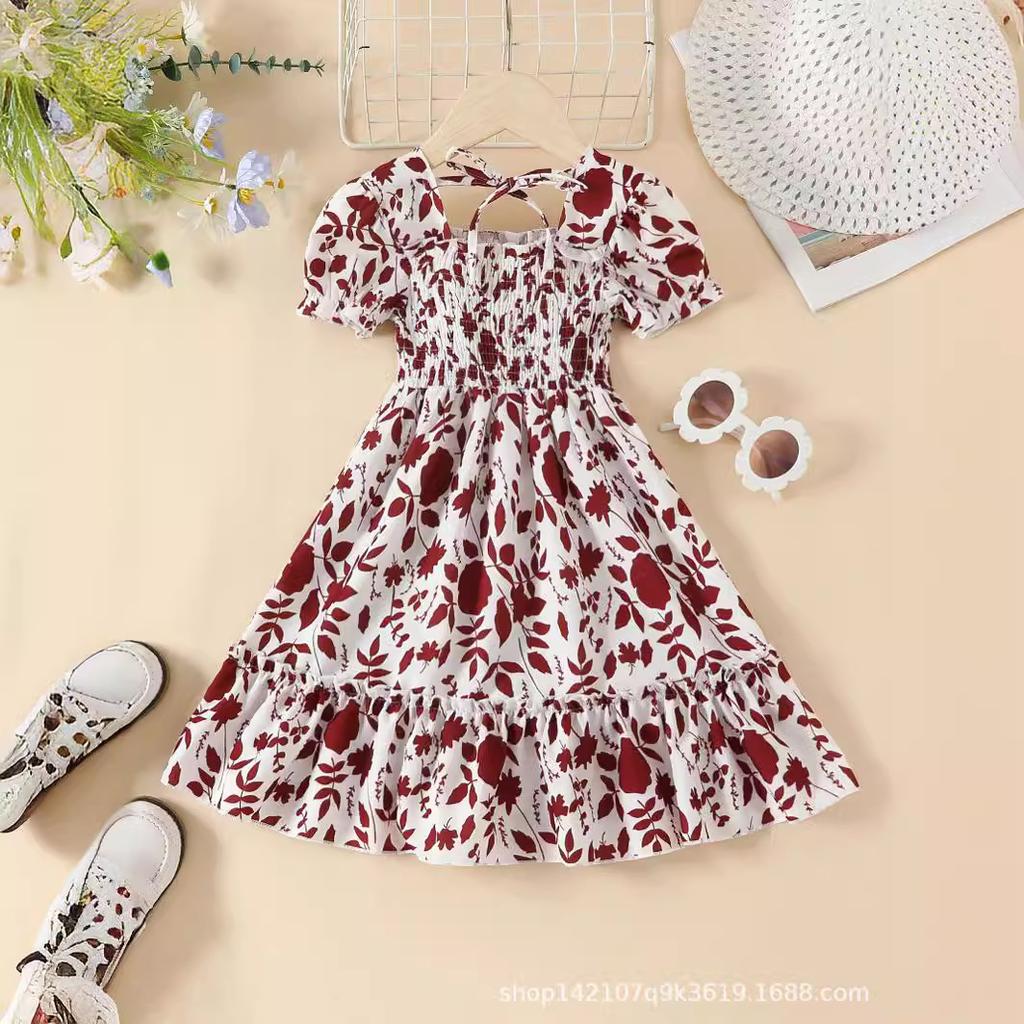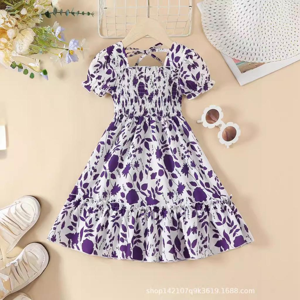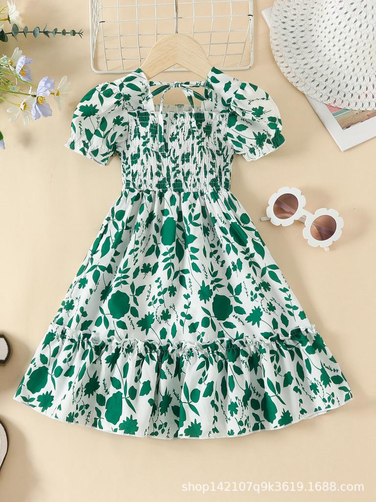 Модное платье с коротким рукавом для девочек. Летнее детское милое свежее цветочное платье.
